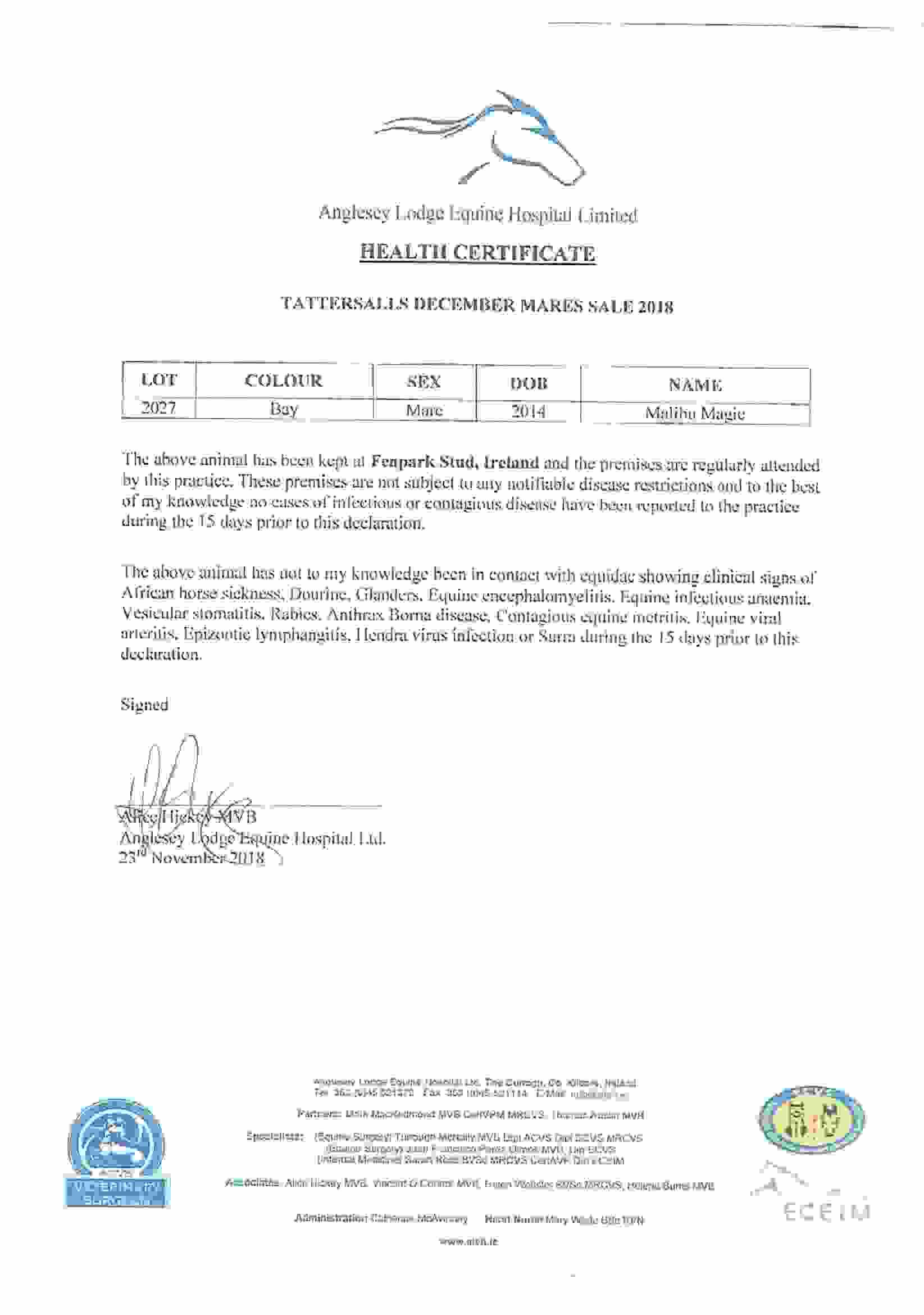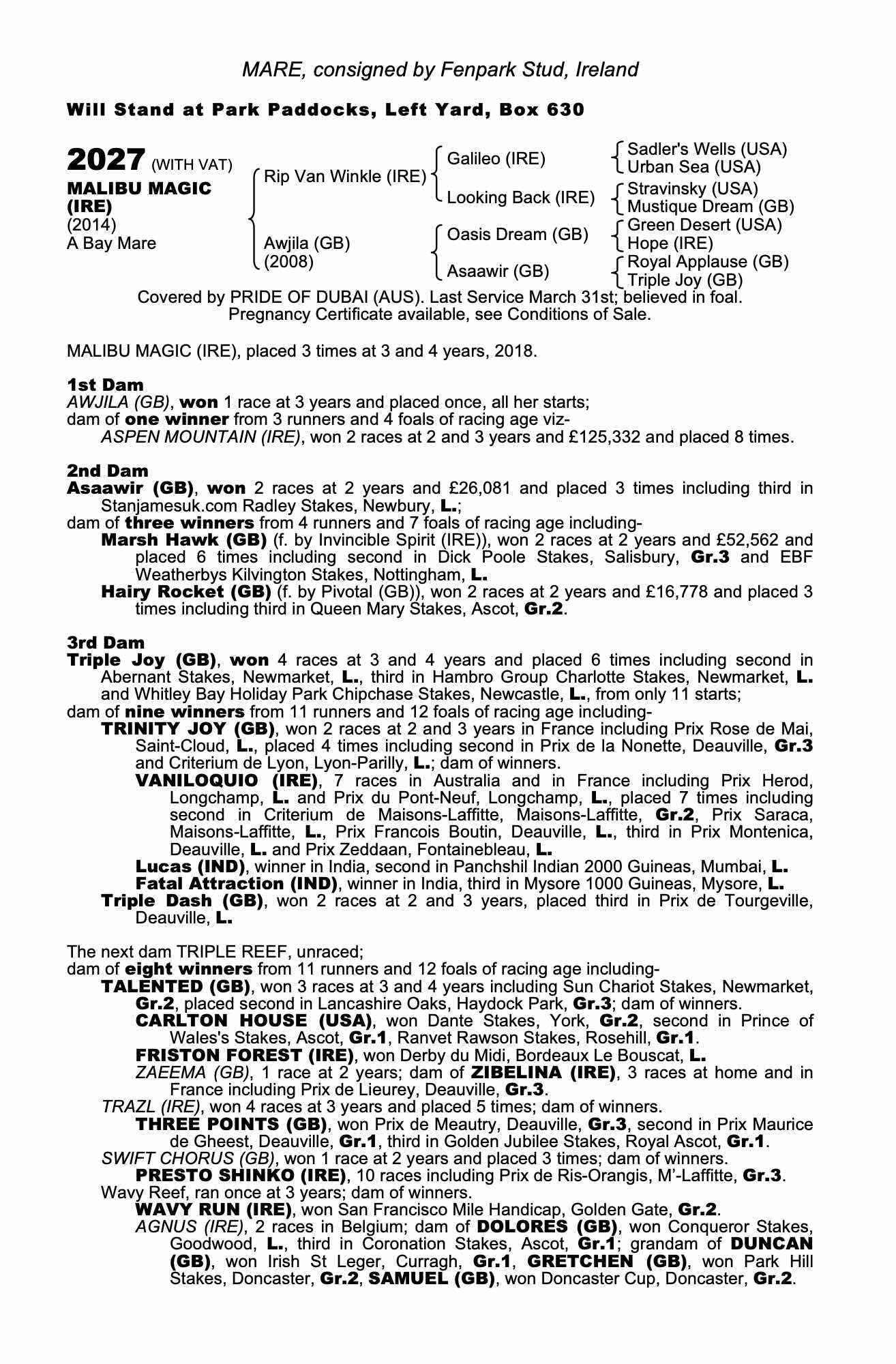 Consignor: Fenpark Stud, Ireland