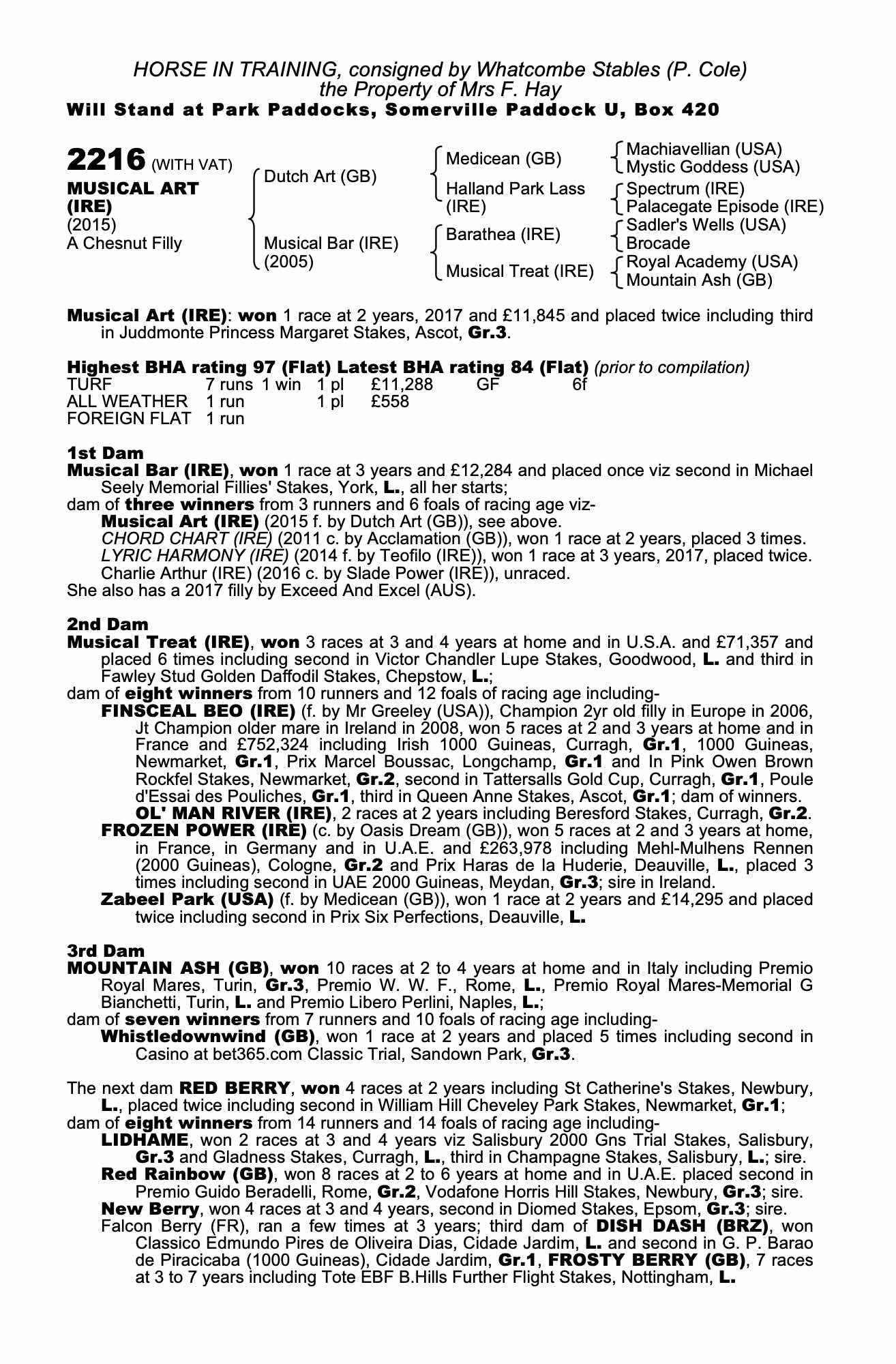 Guineas Horses in Training Sale 2024 lot 11 Musical Diva (IRE) (F. by James Garfield (IRE)), Baroda Stud, Ireland=>John Bourke 10,000 gns