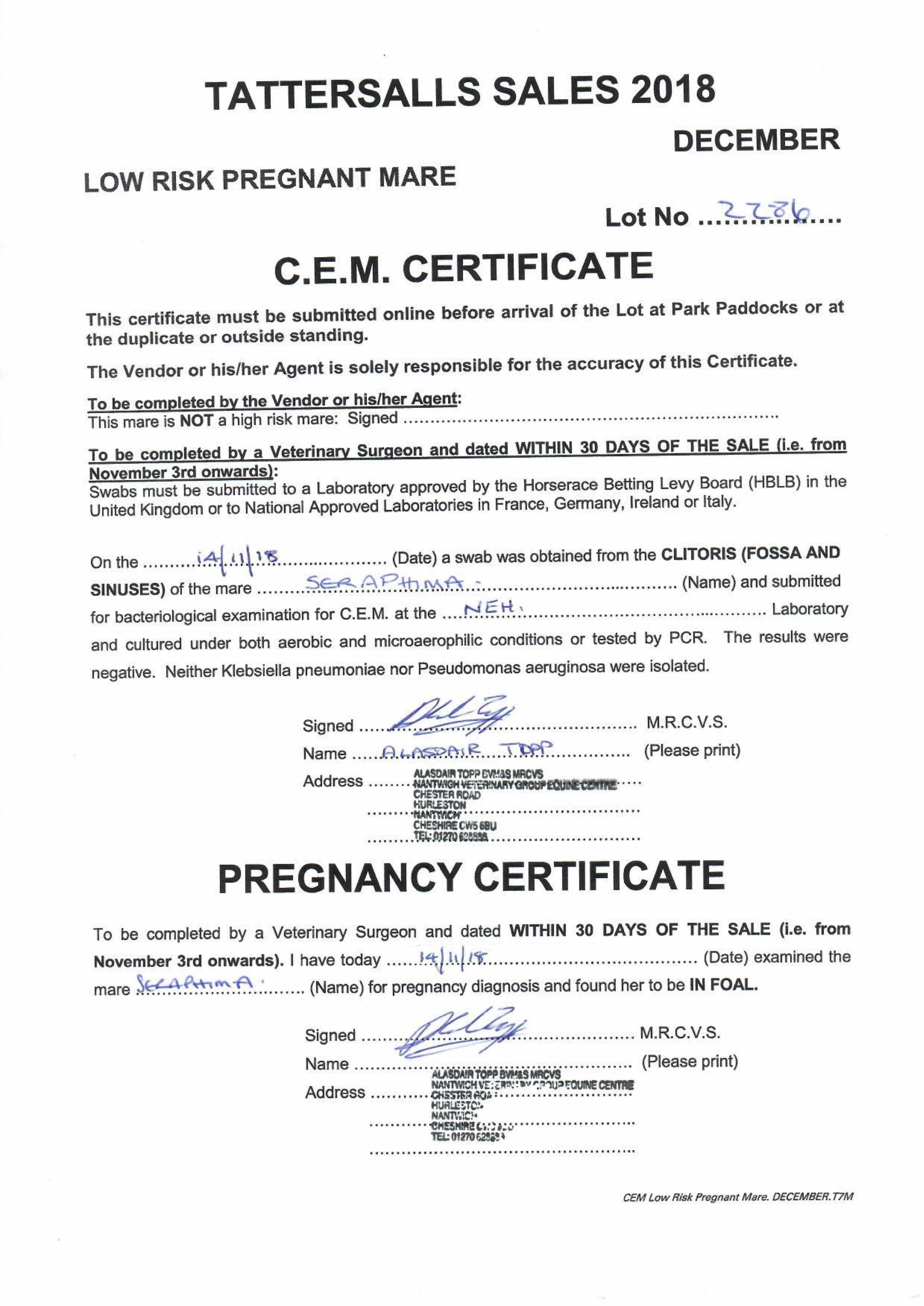 December Mare Sale 2015 lot 2223 Weetles (GB) (F. by High Chaparral (IRE)), Voute Sales Ltd. (Agent)=>Anthony L Penfold 50,000 gns