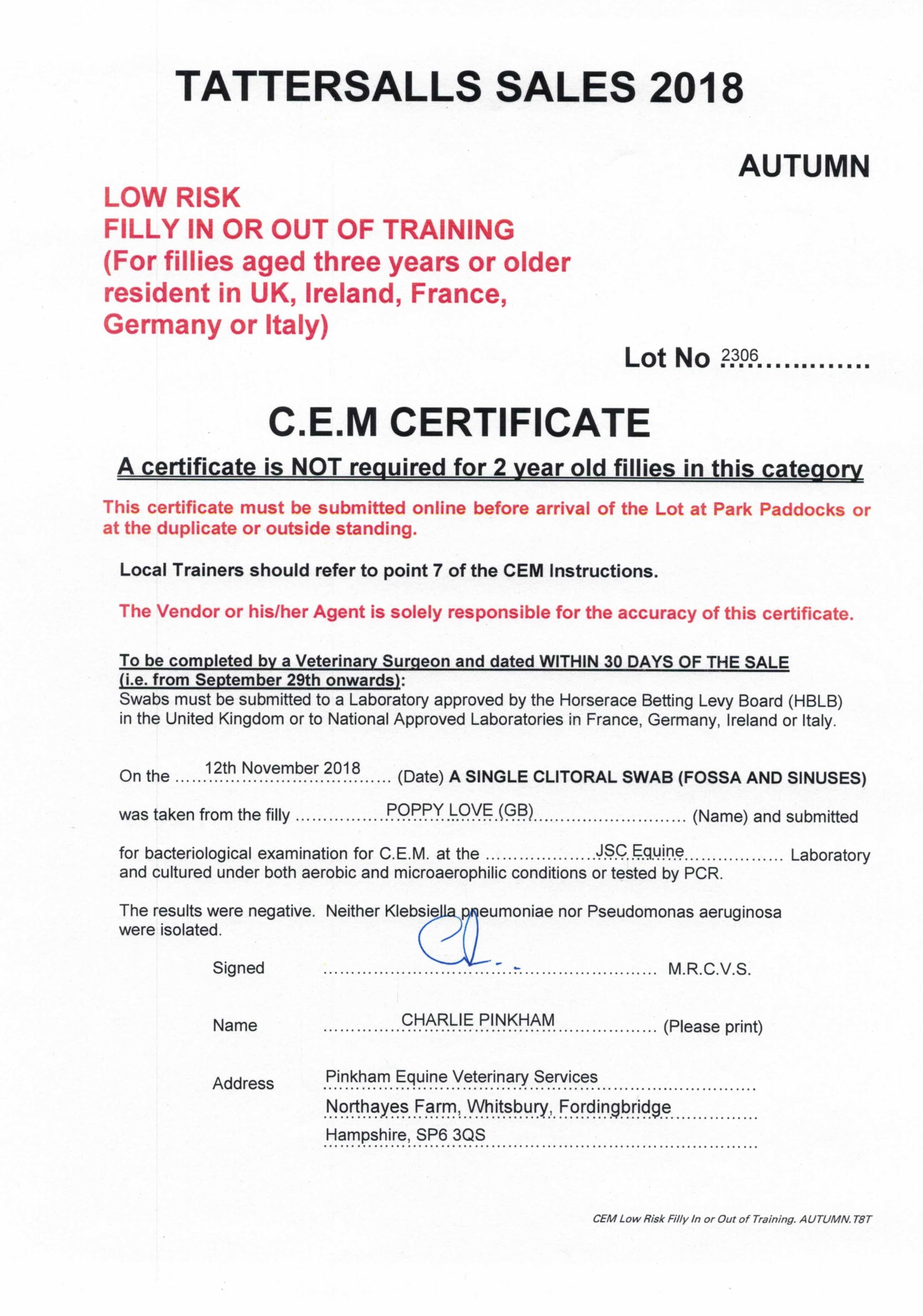 Consignor: Glebe Farm Stud