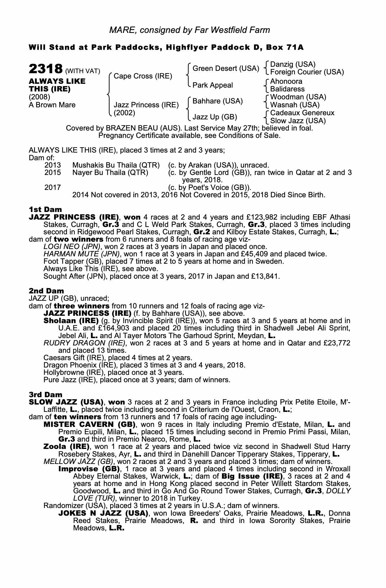 December Mare Sale 2012 lot 2295, Aislabie Stud (Agent)=>Conrad Allen 13,000 gns