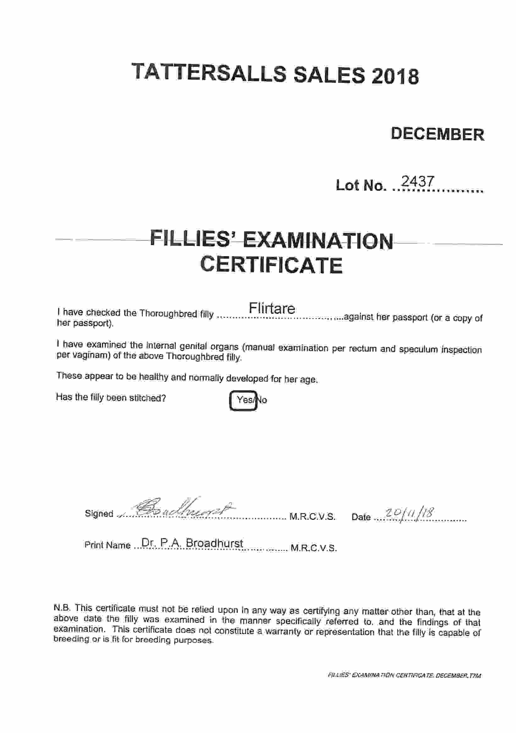 February Sale 2019 lot 277, Coombelands Racing Stables (Mrs A. Perrett)=>Howson & Houldsworth Bloodstock 20,000 gns