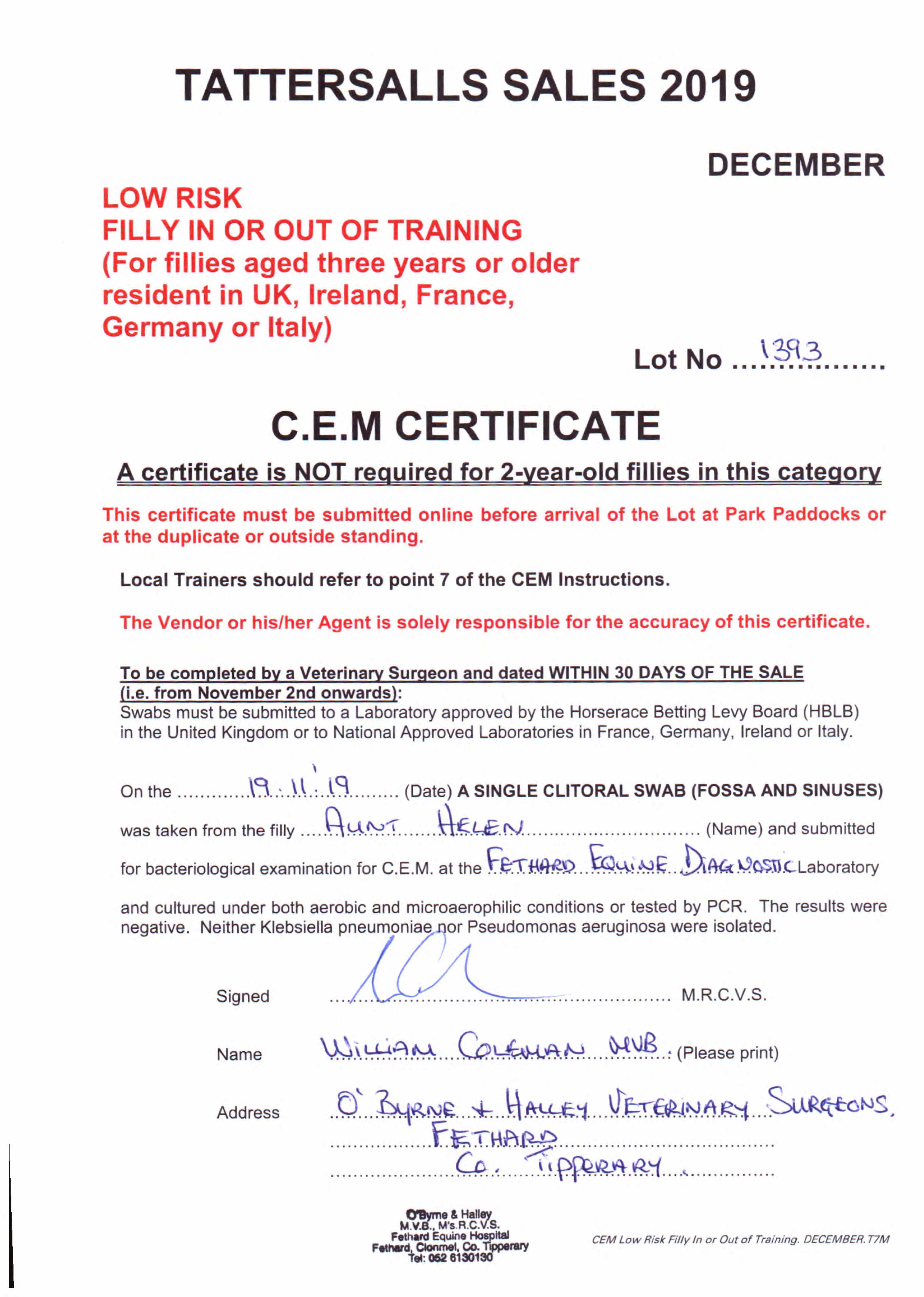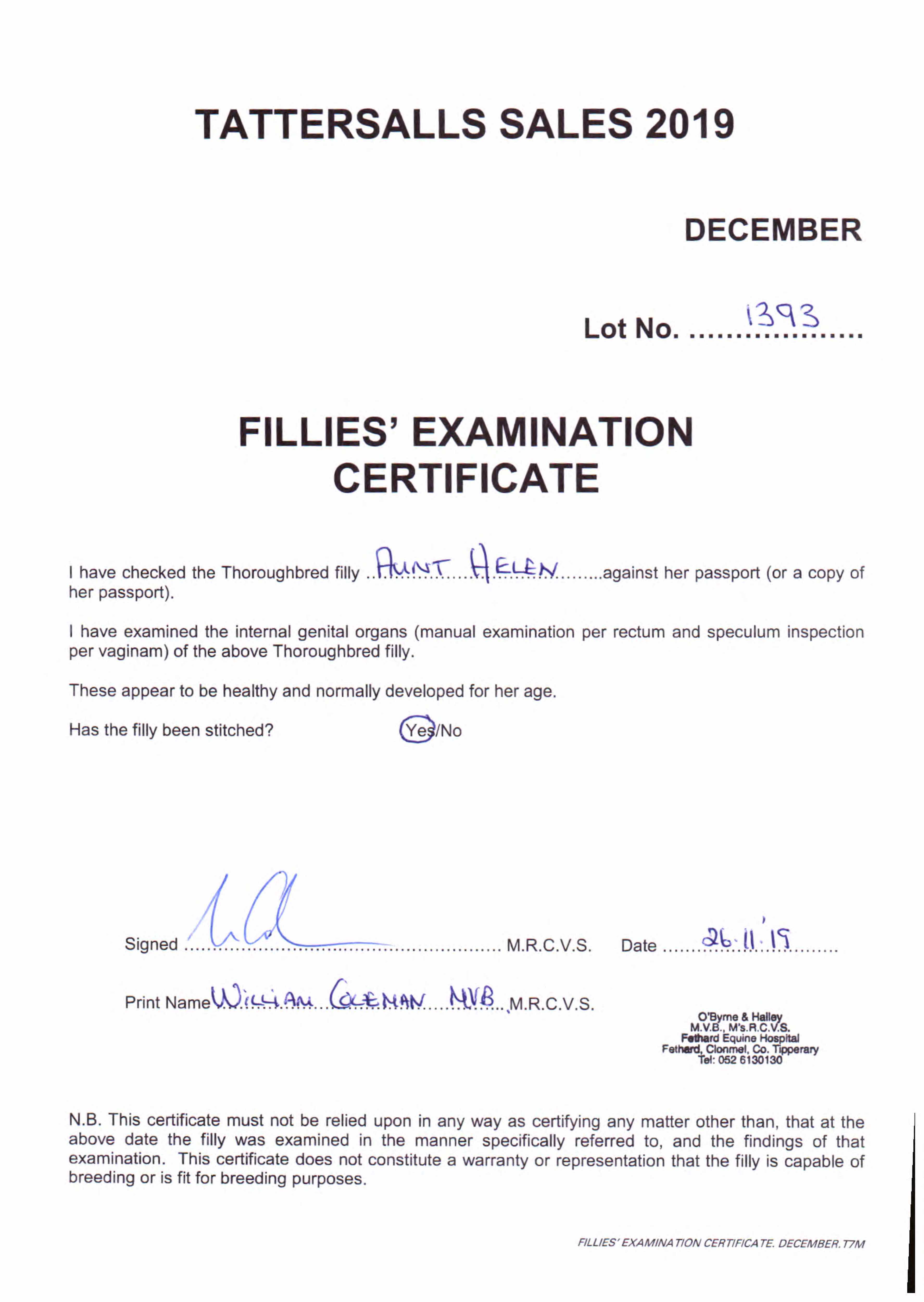 December Mare Sale 2019 lot 1775 Tetrad (USA) (M. by Malibu Moon (USA)), New England Stud=>Vendor 80,000 gns