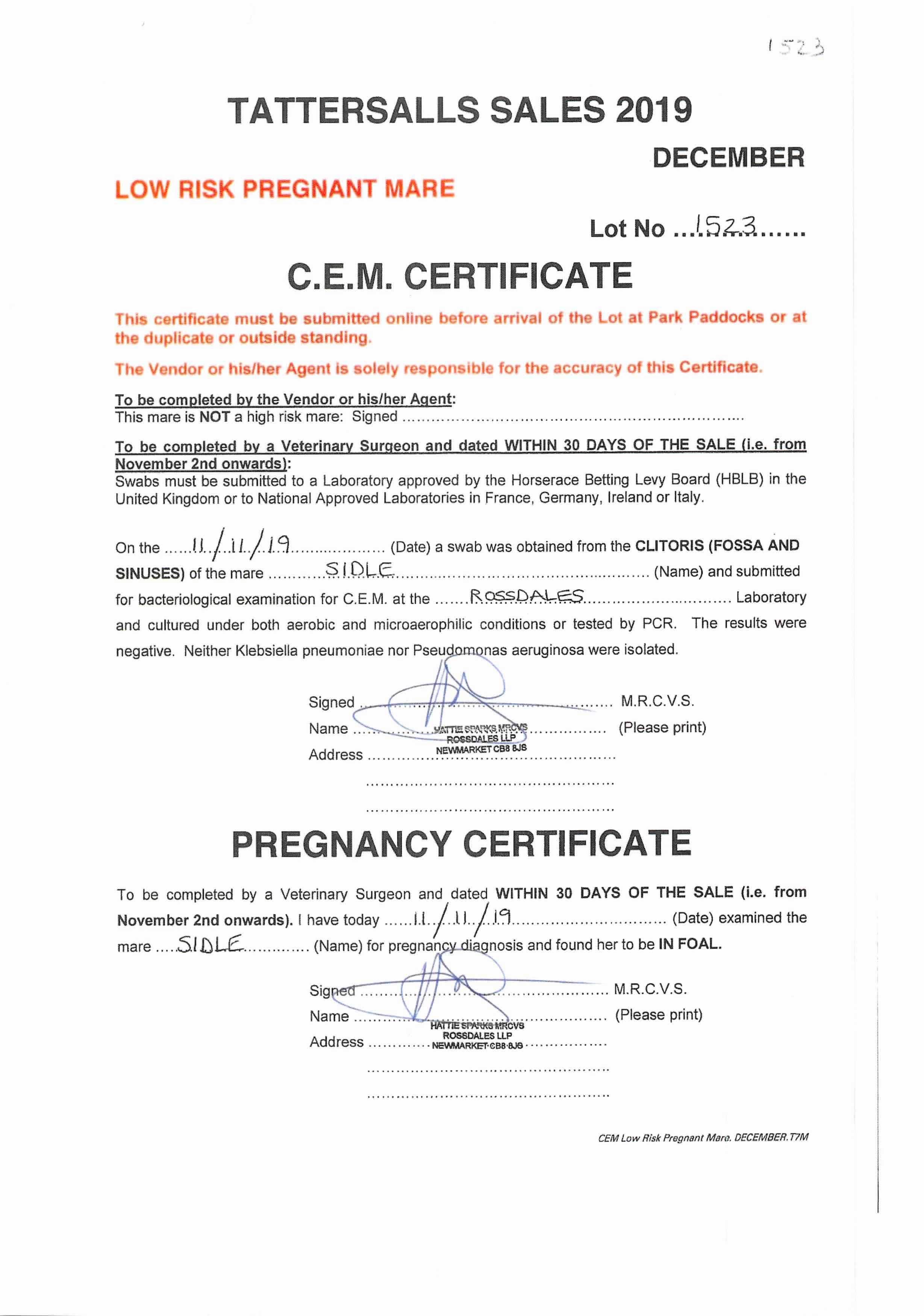 December Foal Sale 2012 lot 1036 F. by Cape Cross (IRE) 2012, West Blagdon Stud=>Camas Park Stud 105,000 gns