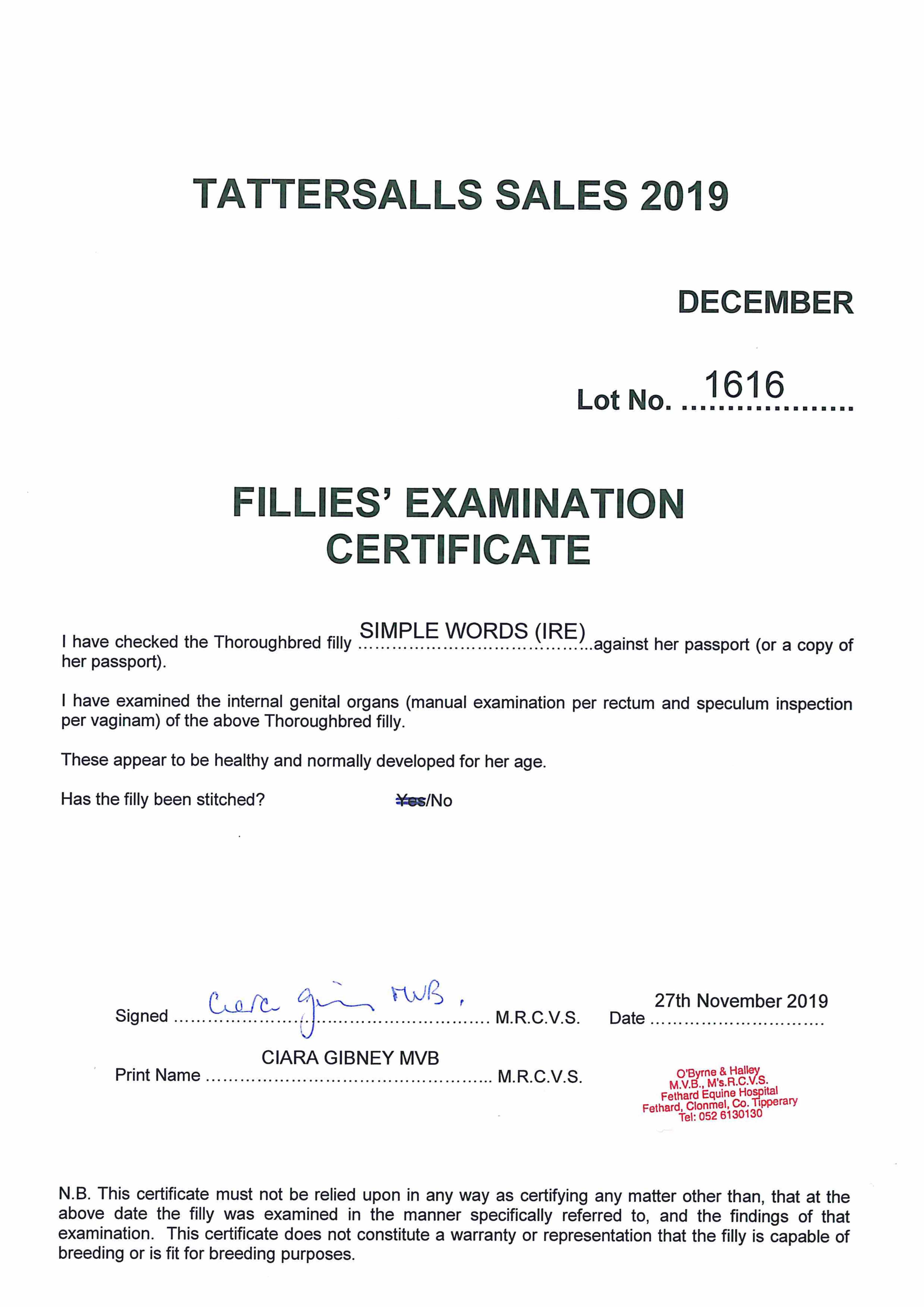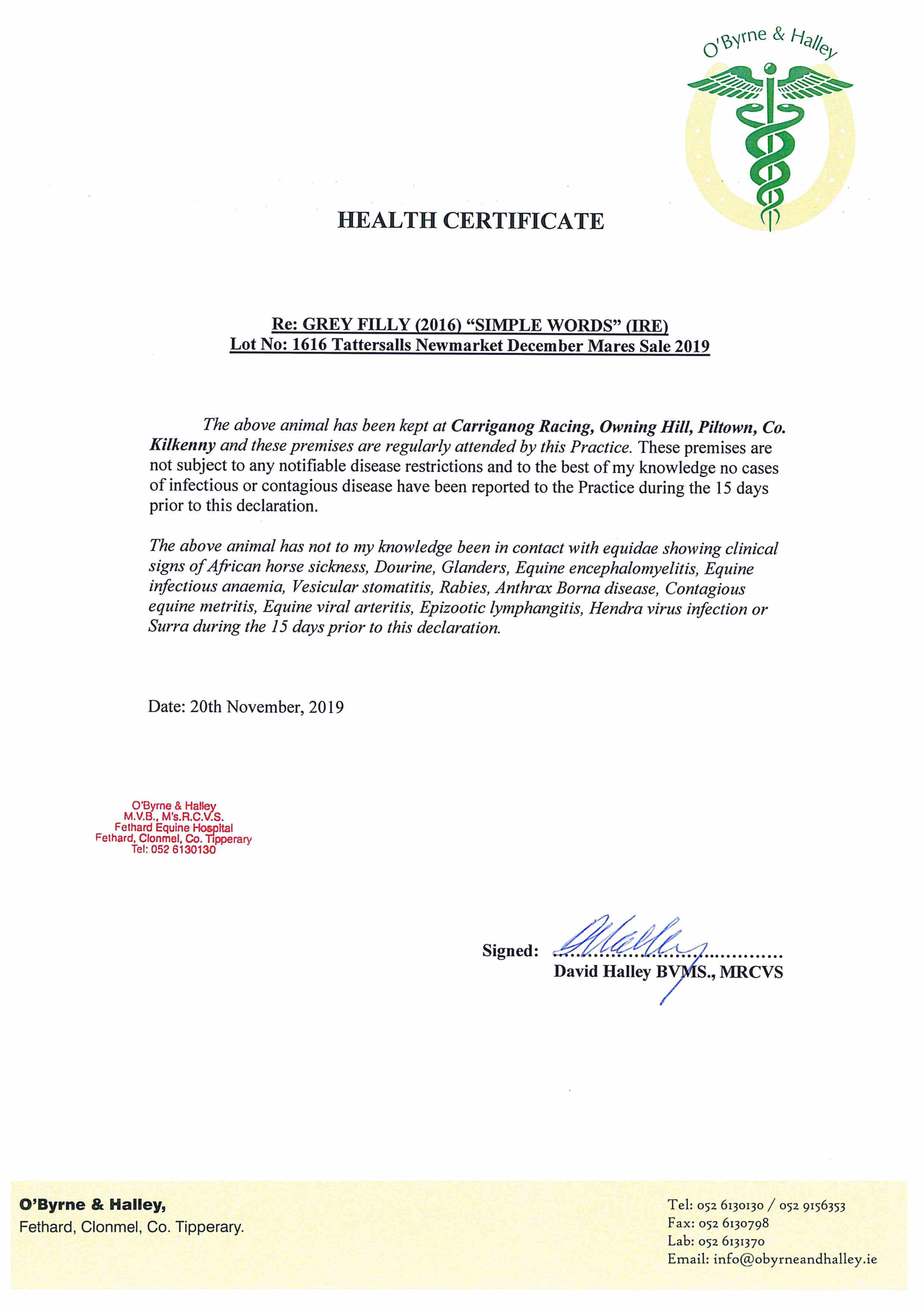 Consignor: Carriganog Racing, Ireland (J. P. O'Brien)