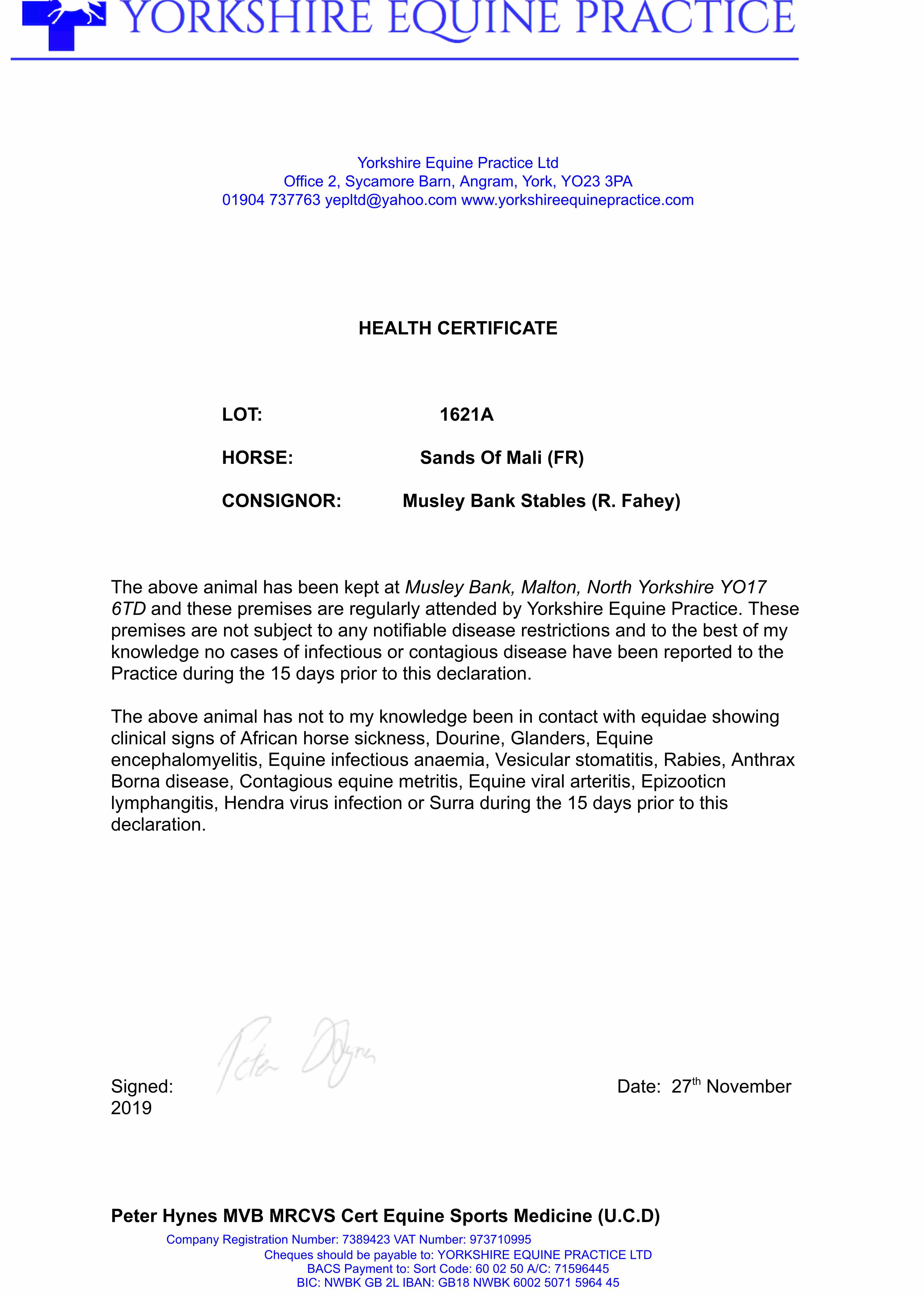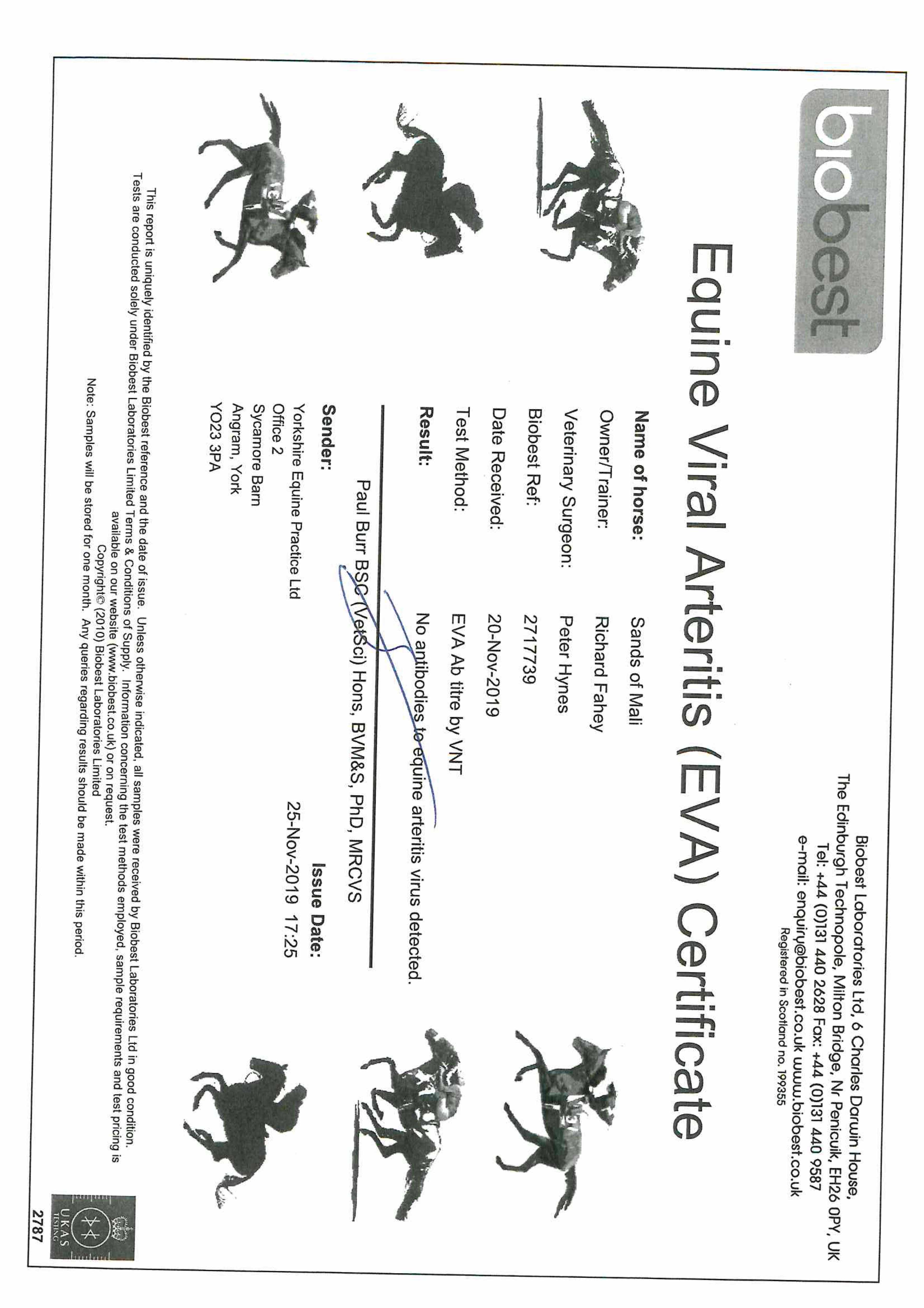Online Sale - 11th December 2025 lot 135 A Breeding Right to Sands of Mali (FR) (H.), a Partnership=>Roalso 74,000 gns