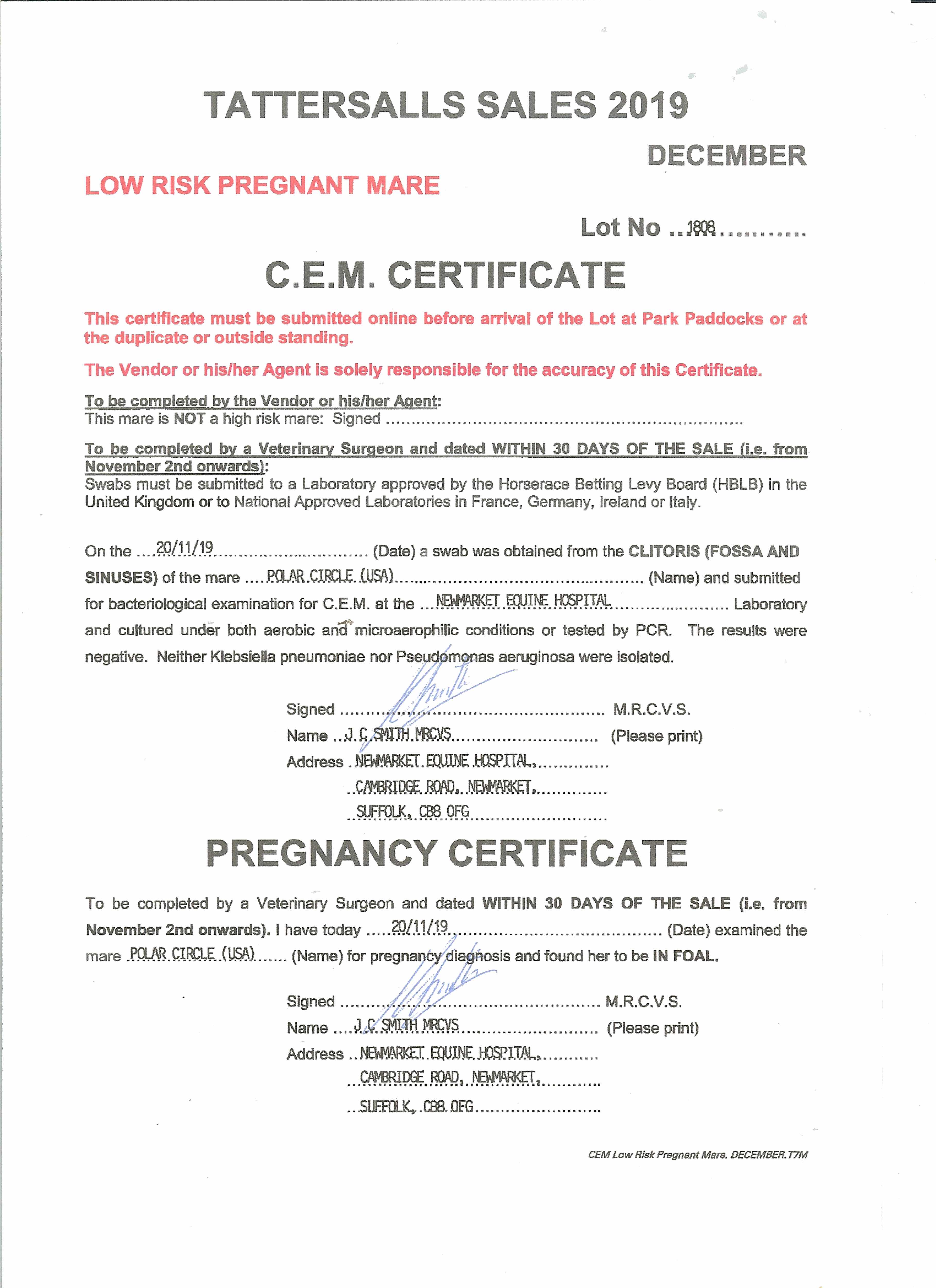 December Mare Sale 1999 lot 1808 Arctic Bird (USA) (M. by Storm Bird (CAN)), Swettenham Stud=>Mercury Bloodstock 30,000 gns