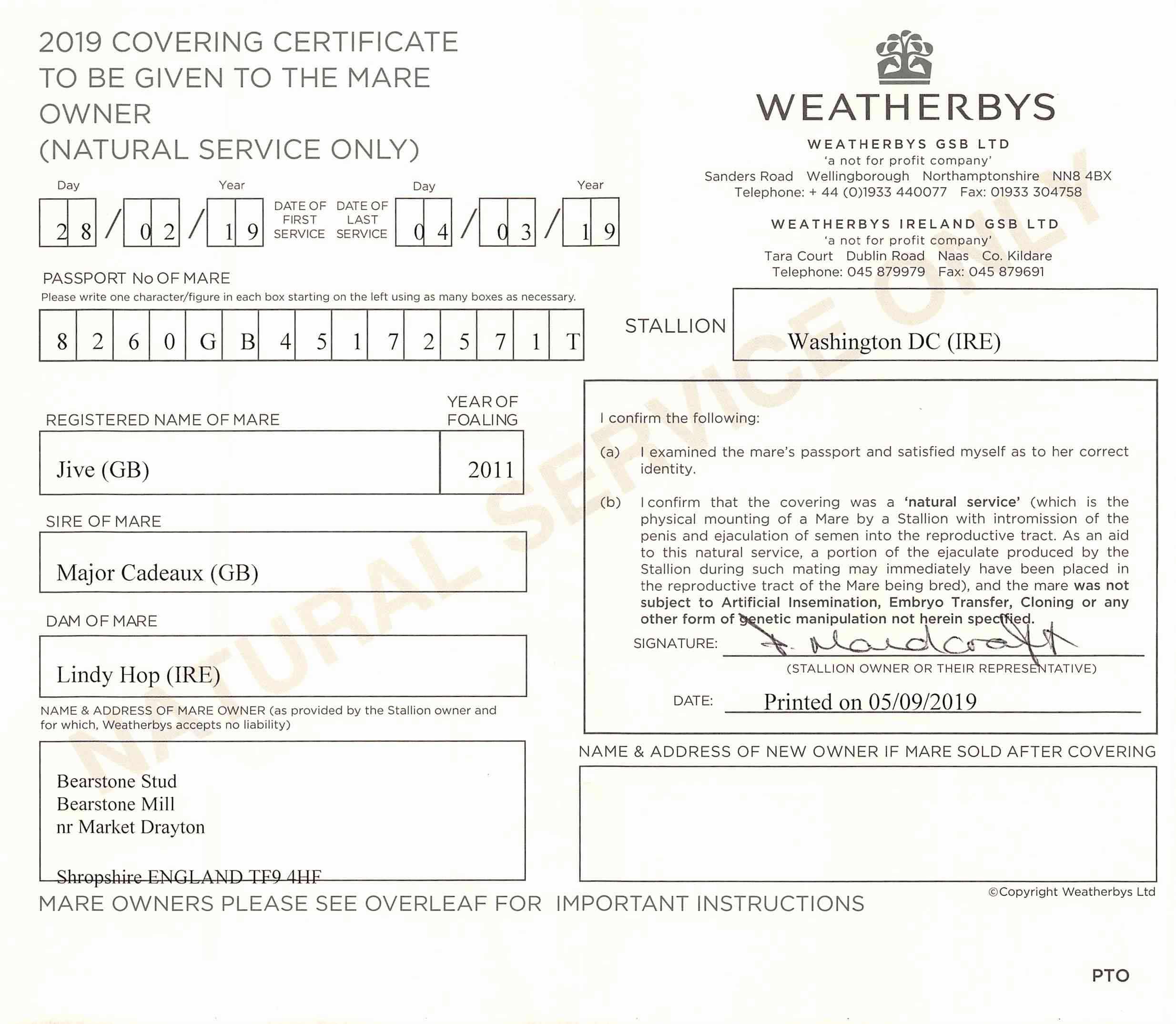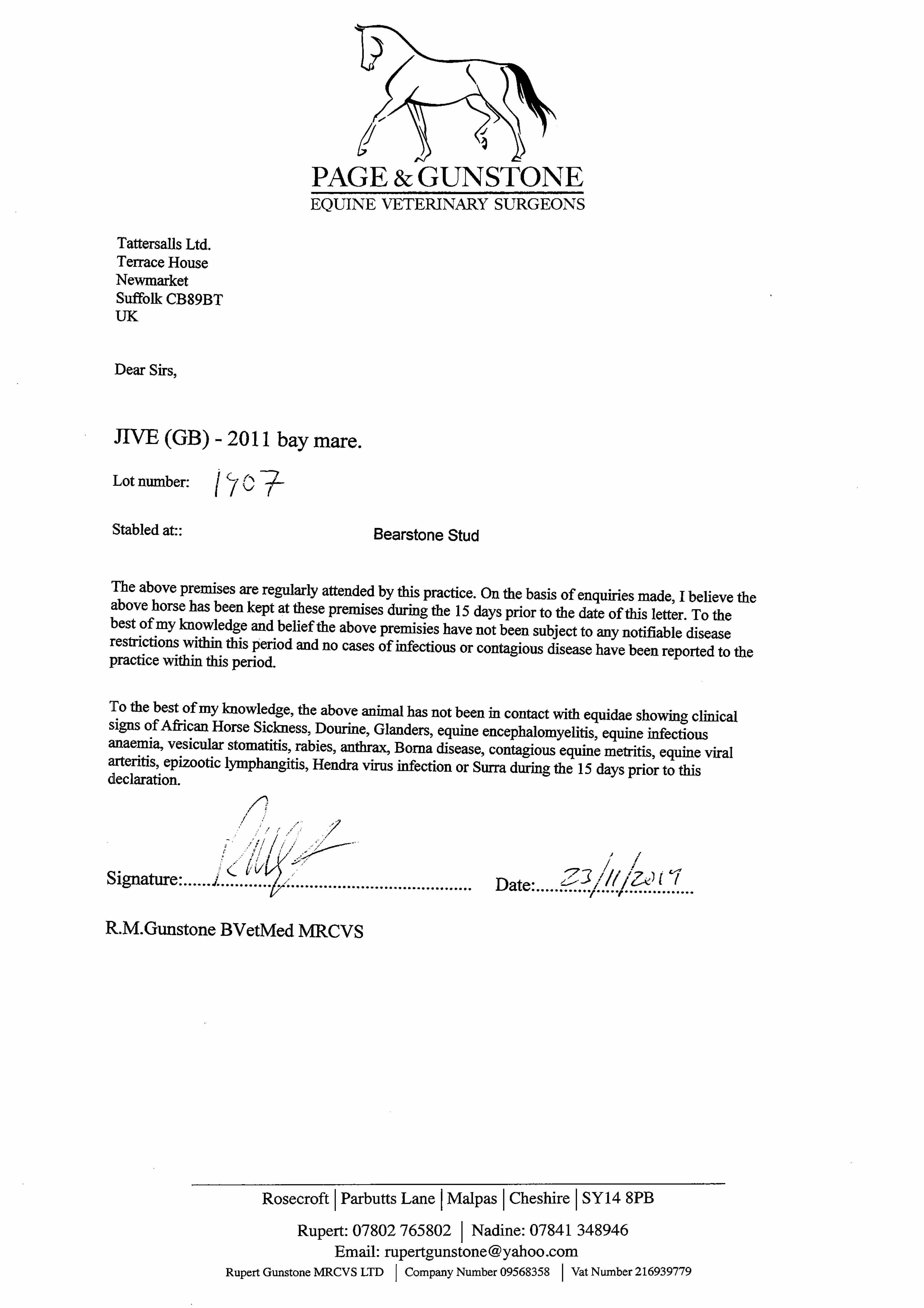 Consignor: Bearstone Stud