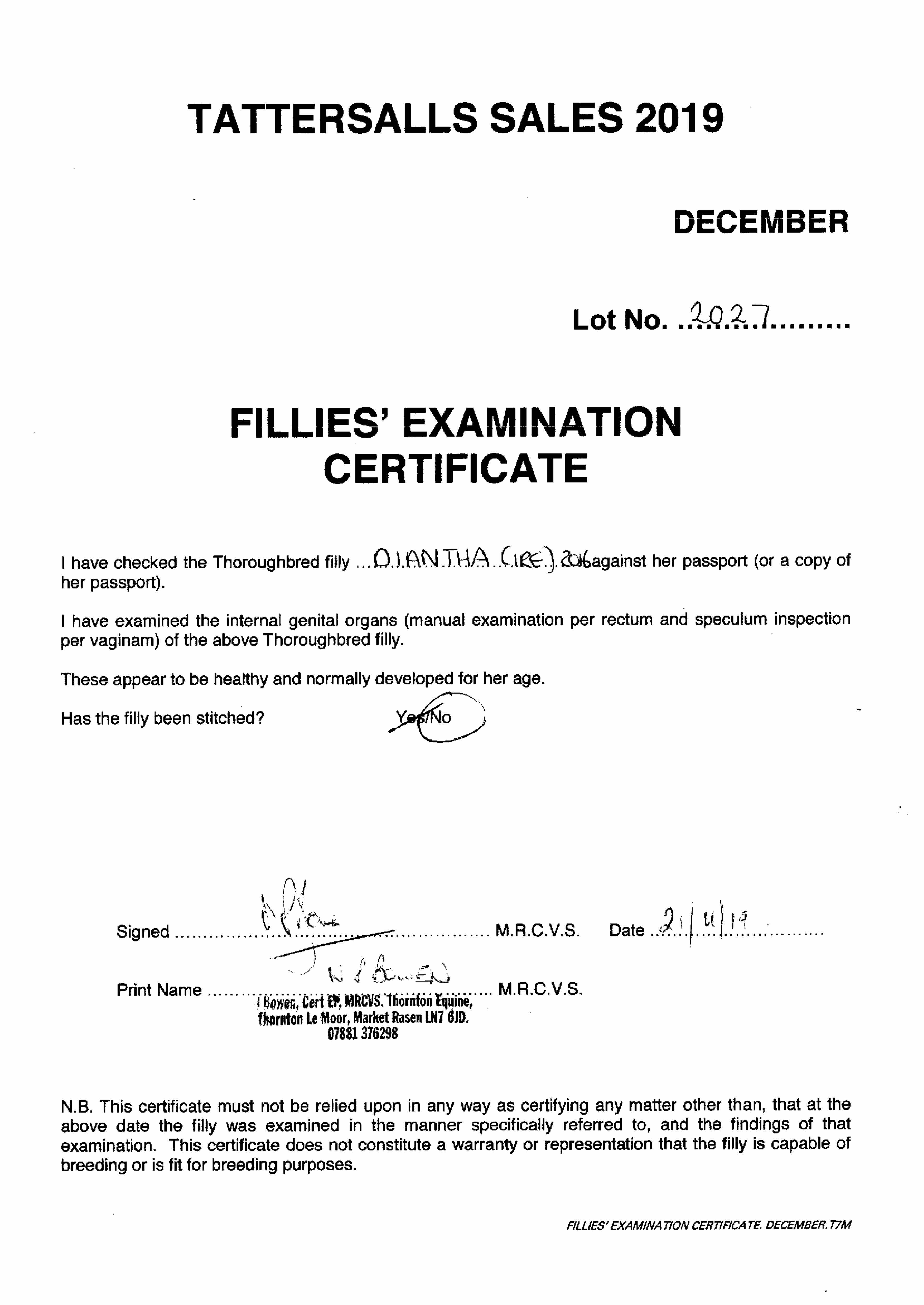 December Mare Sale 2018 lot 2007 Admired (GB) (F. by Oasis Dream (GB)), Tweenhills Farm & Stud=>Imperial Bloodstock 800 gns