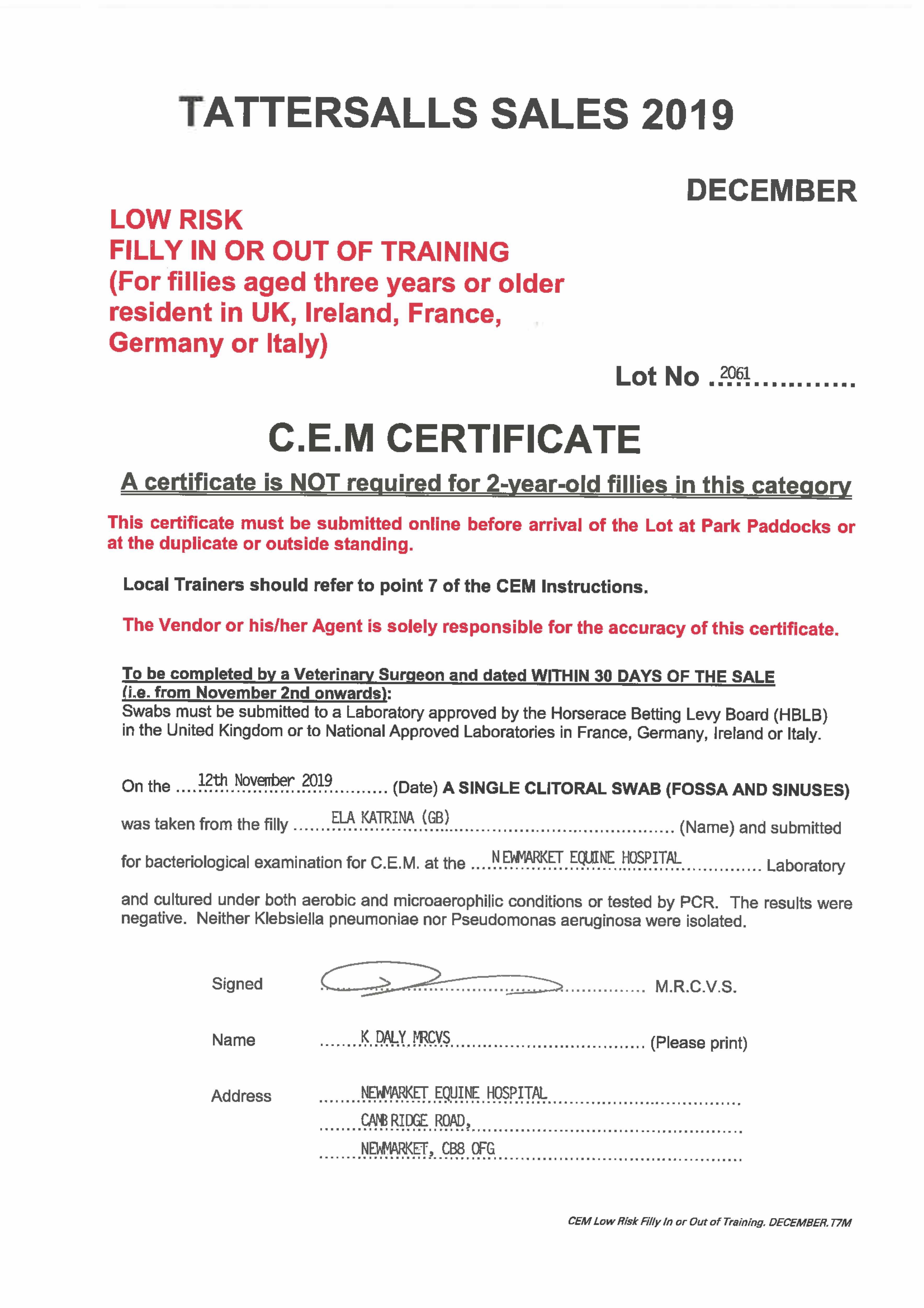 December Mare Sale 2010 lot 1892 Ela's Giant (GB) (M. by Giant's Causeway (USA)), Newsells Park Stud Ltd.=>Neven Botica 9,500 gns