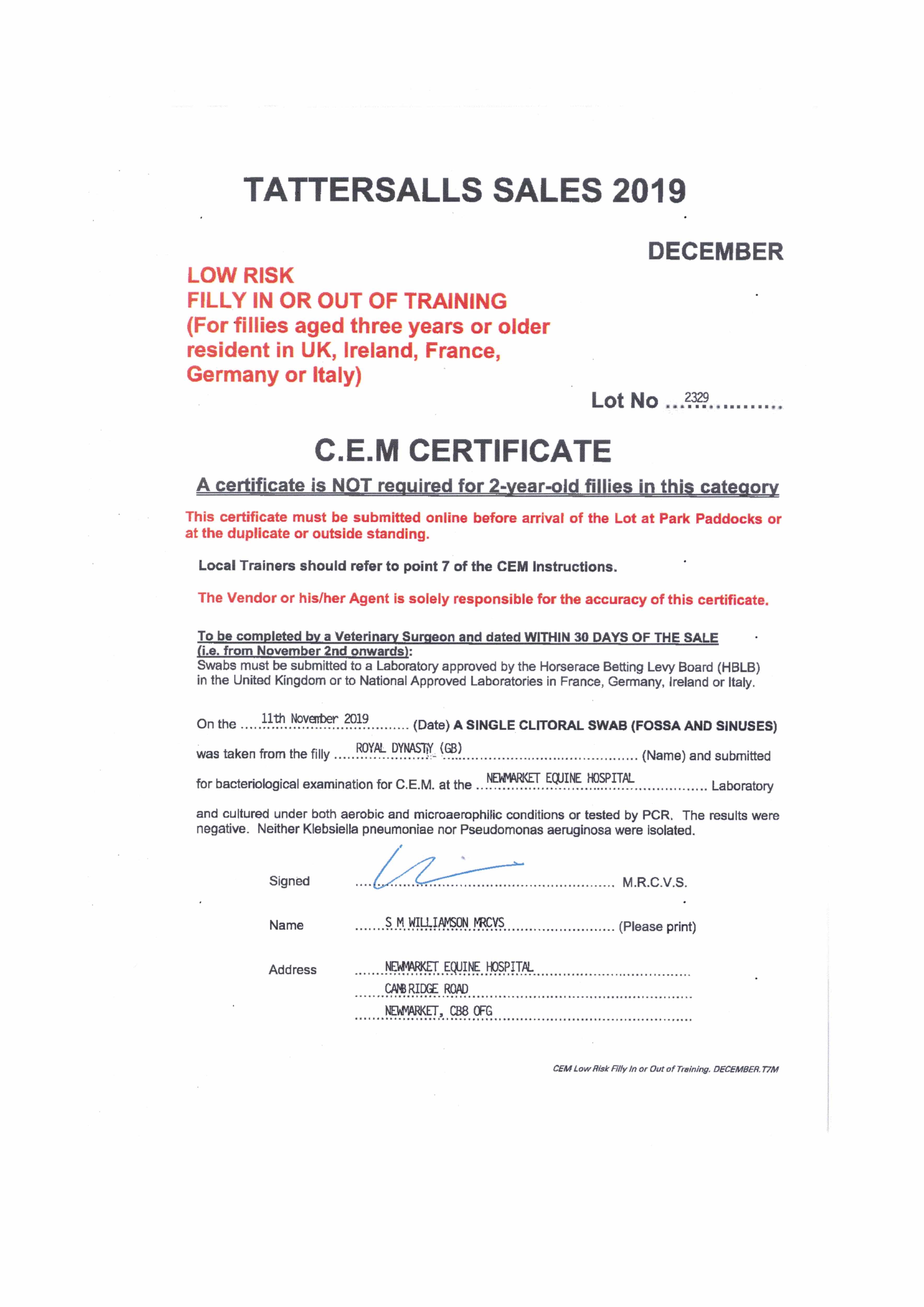December Foal Sale 2019 lot 277 F. by Hot Streak (IRE) 2019, Tweenhills Farm & Stud=>Vendor 800 gns