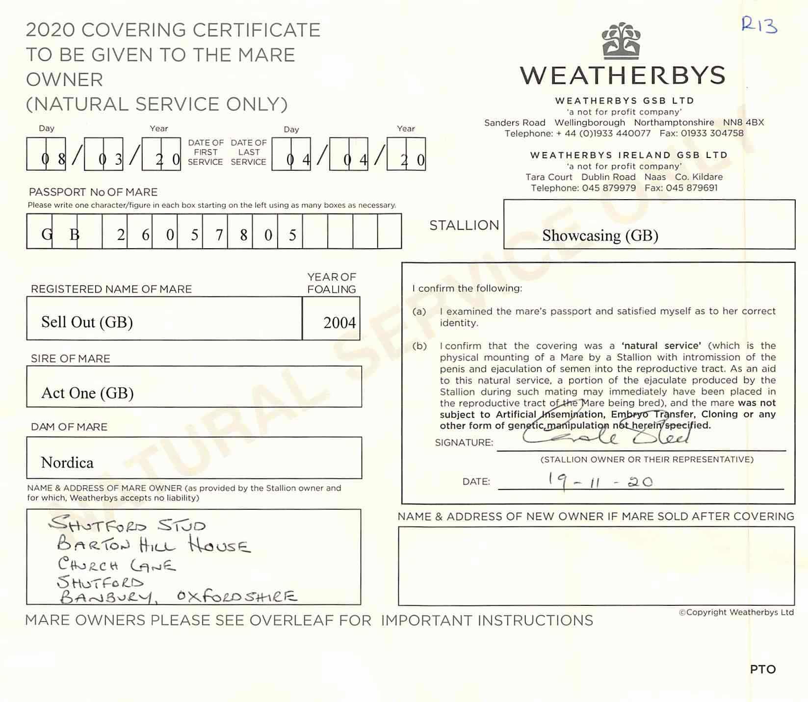 Consignor: Culworth Grounds Farm