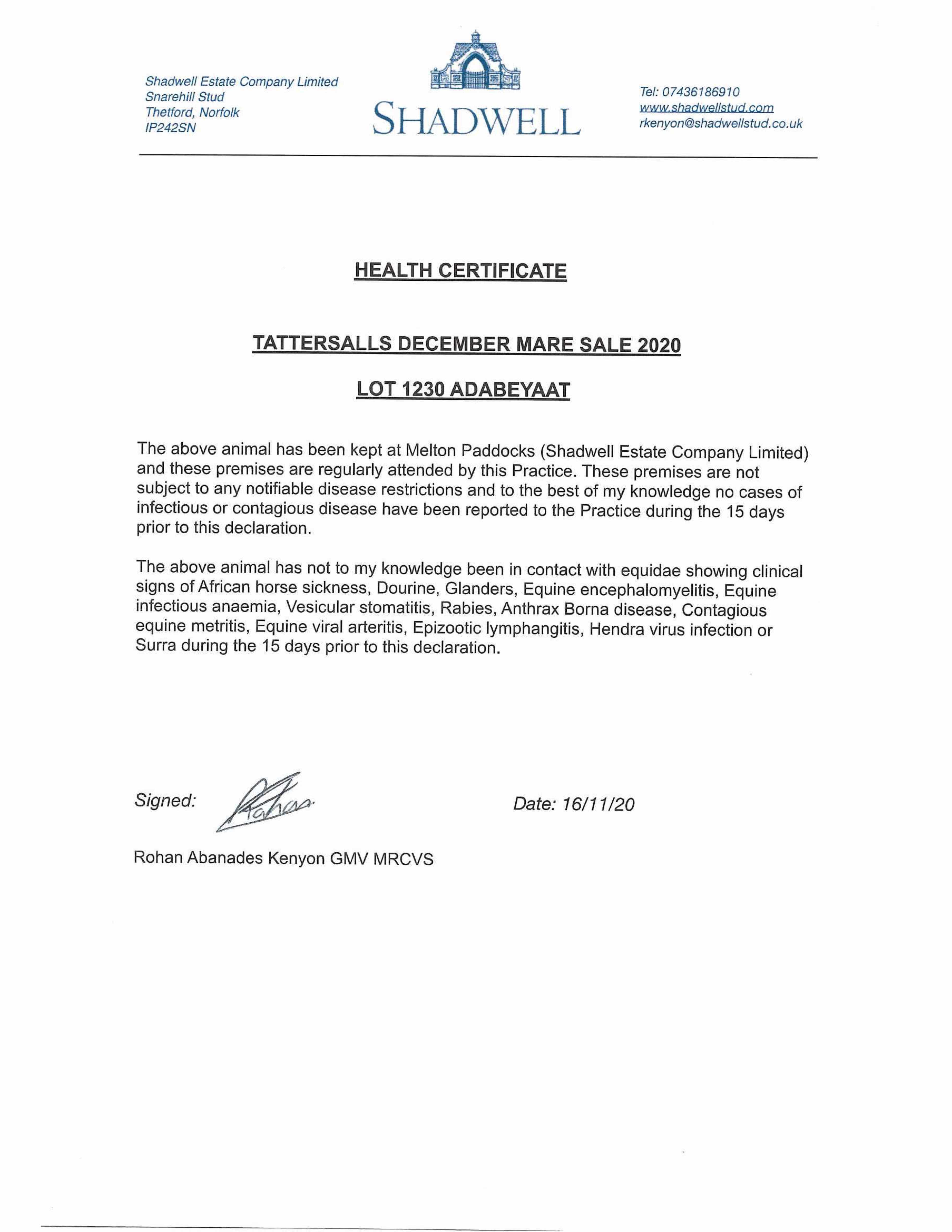Consignor: Shadwell Estate Company Ltd.