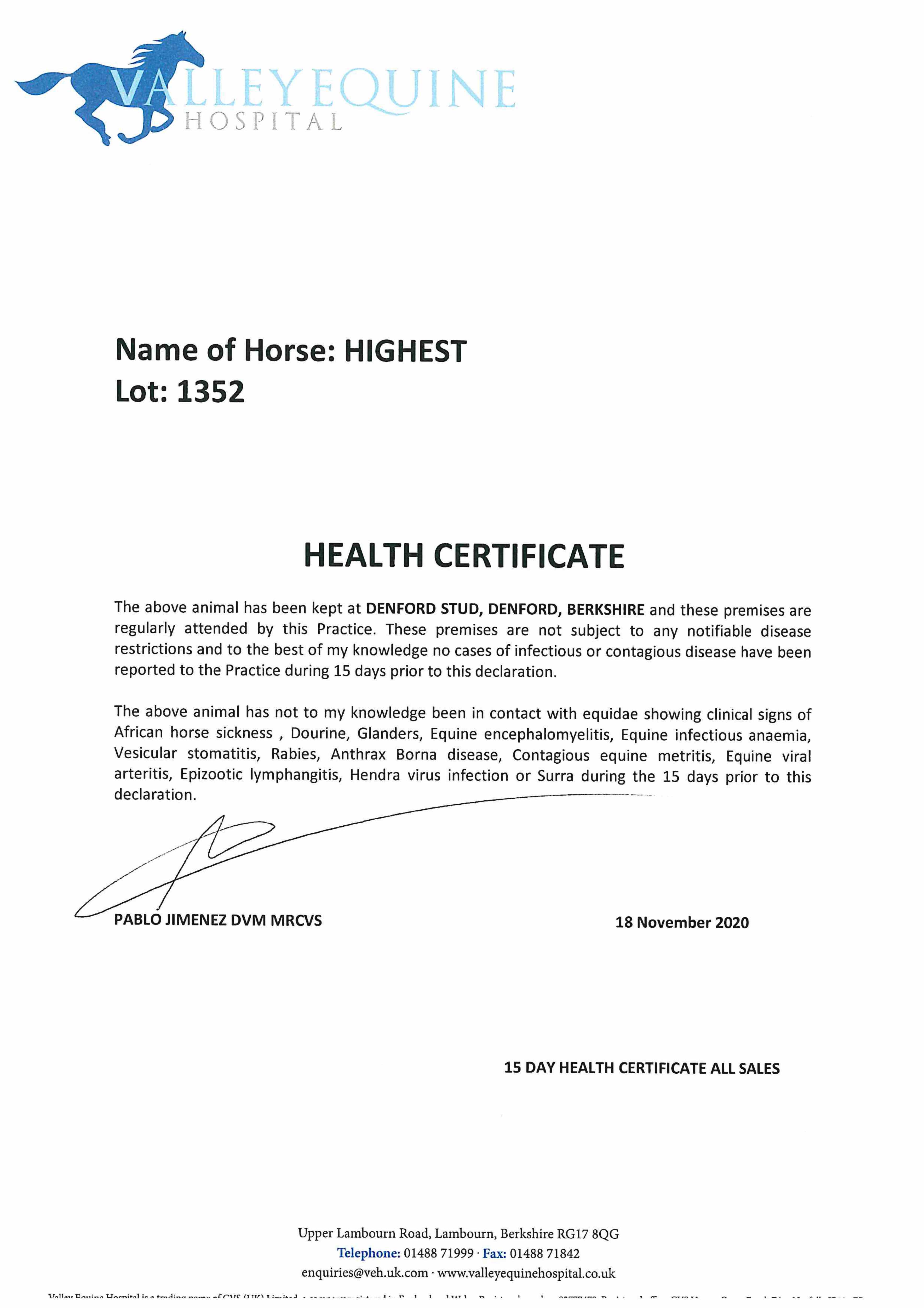 Consignor: Voute Sales Ltd. (Agent)