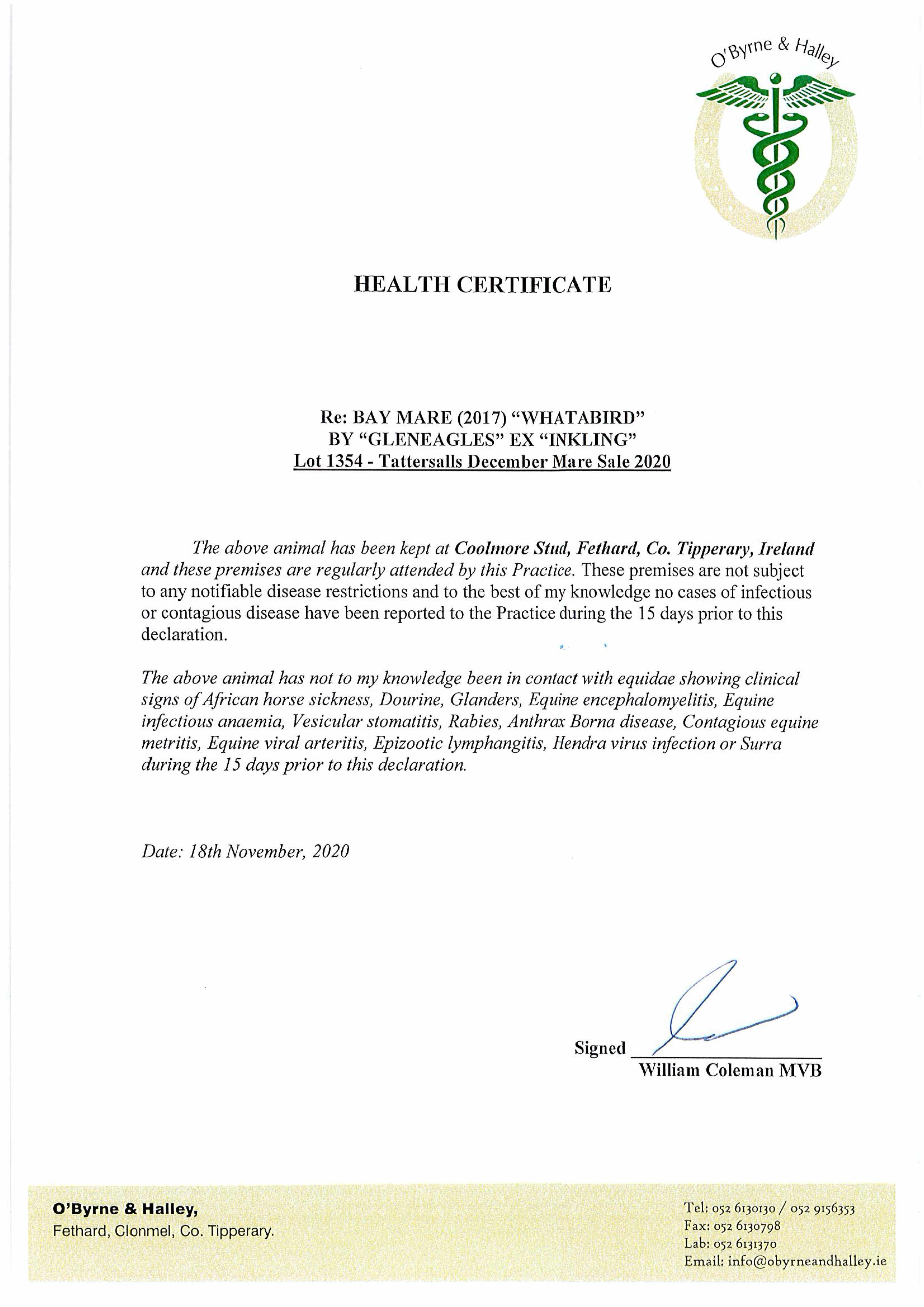 Consignor: Voute Sales Ltd. (Agent)