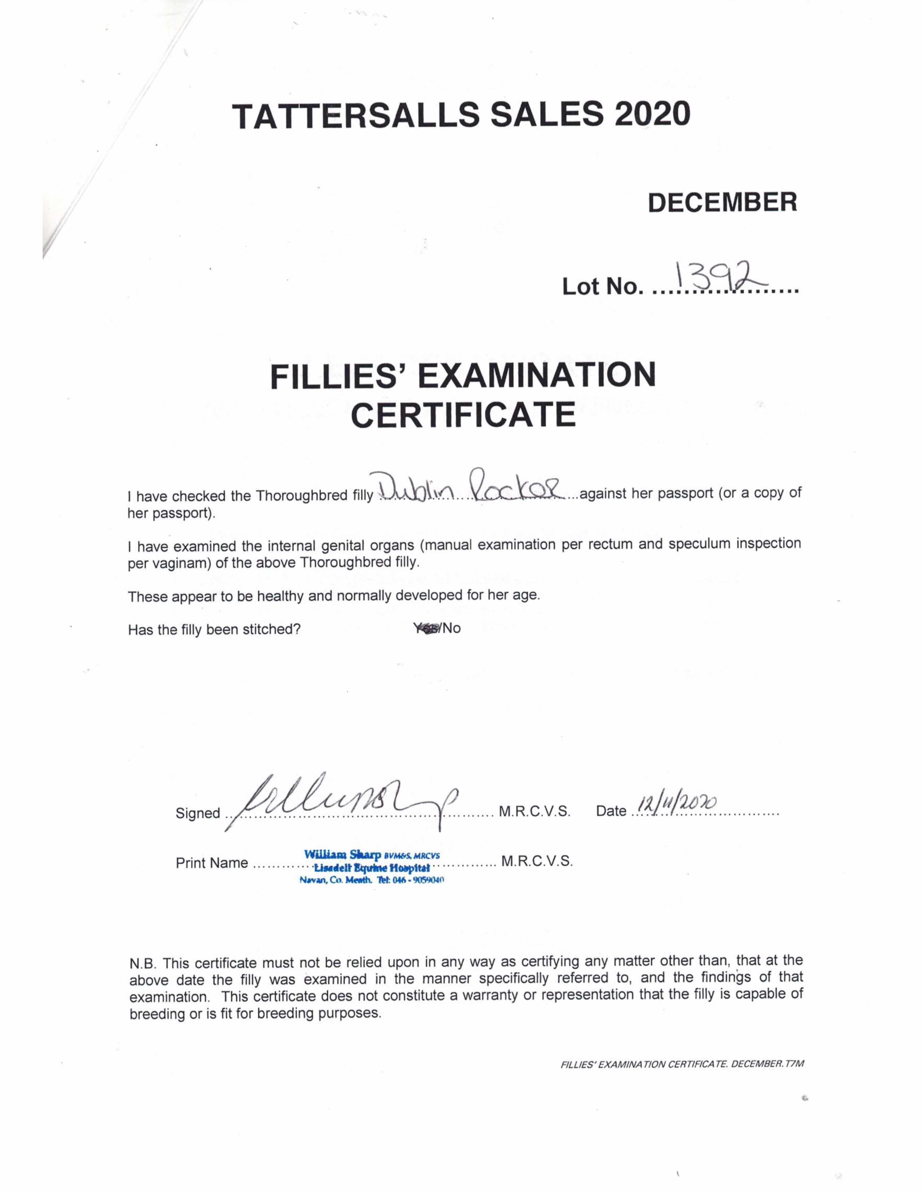 December Mare Sale 2020 lot 1325 Hummingbird (IRE) (M. by Fast Company (IRE)), Wardstown Stud, Ireland=>John Keegan 68,000 gns