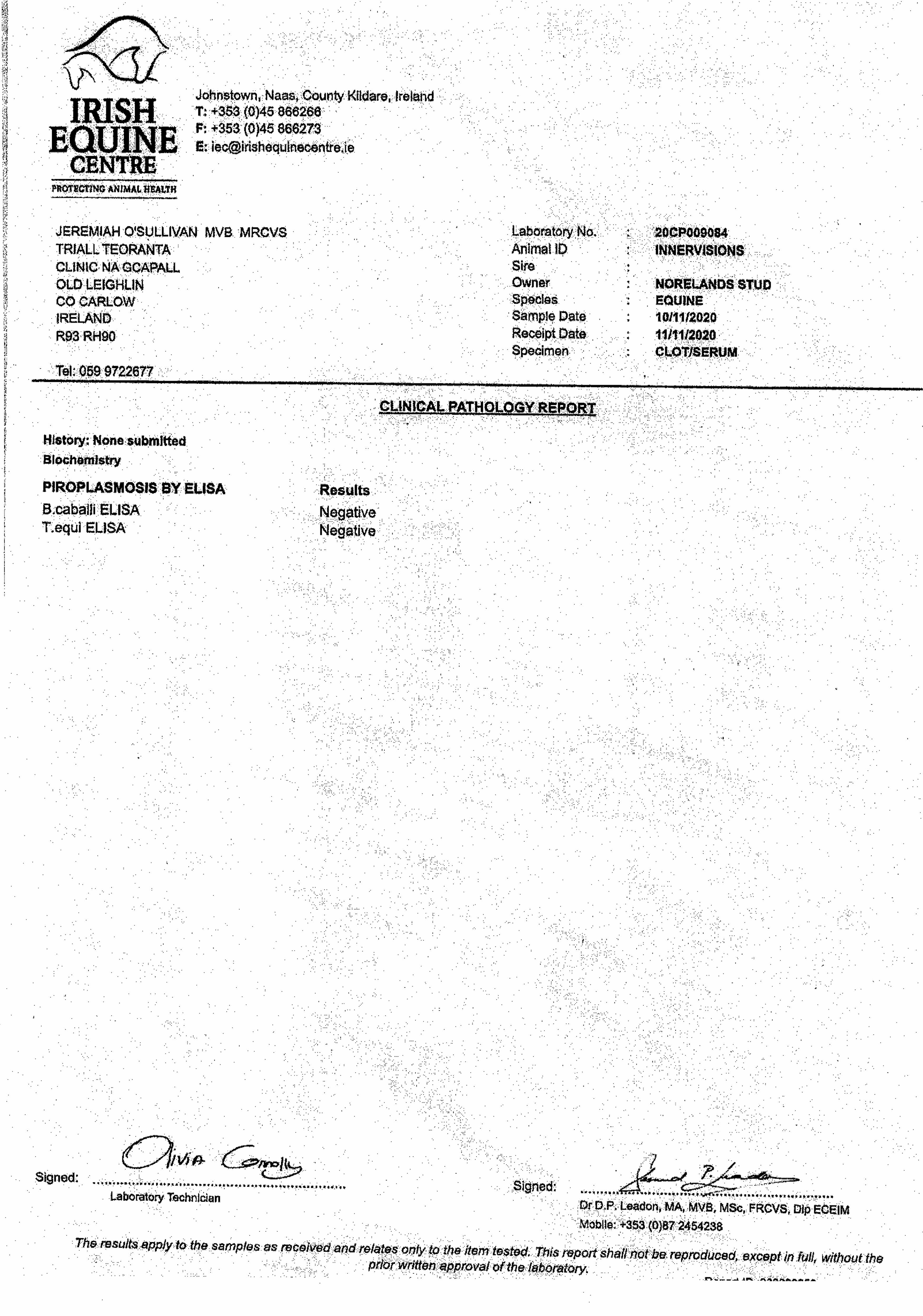 Piroplasmosis Certificate