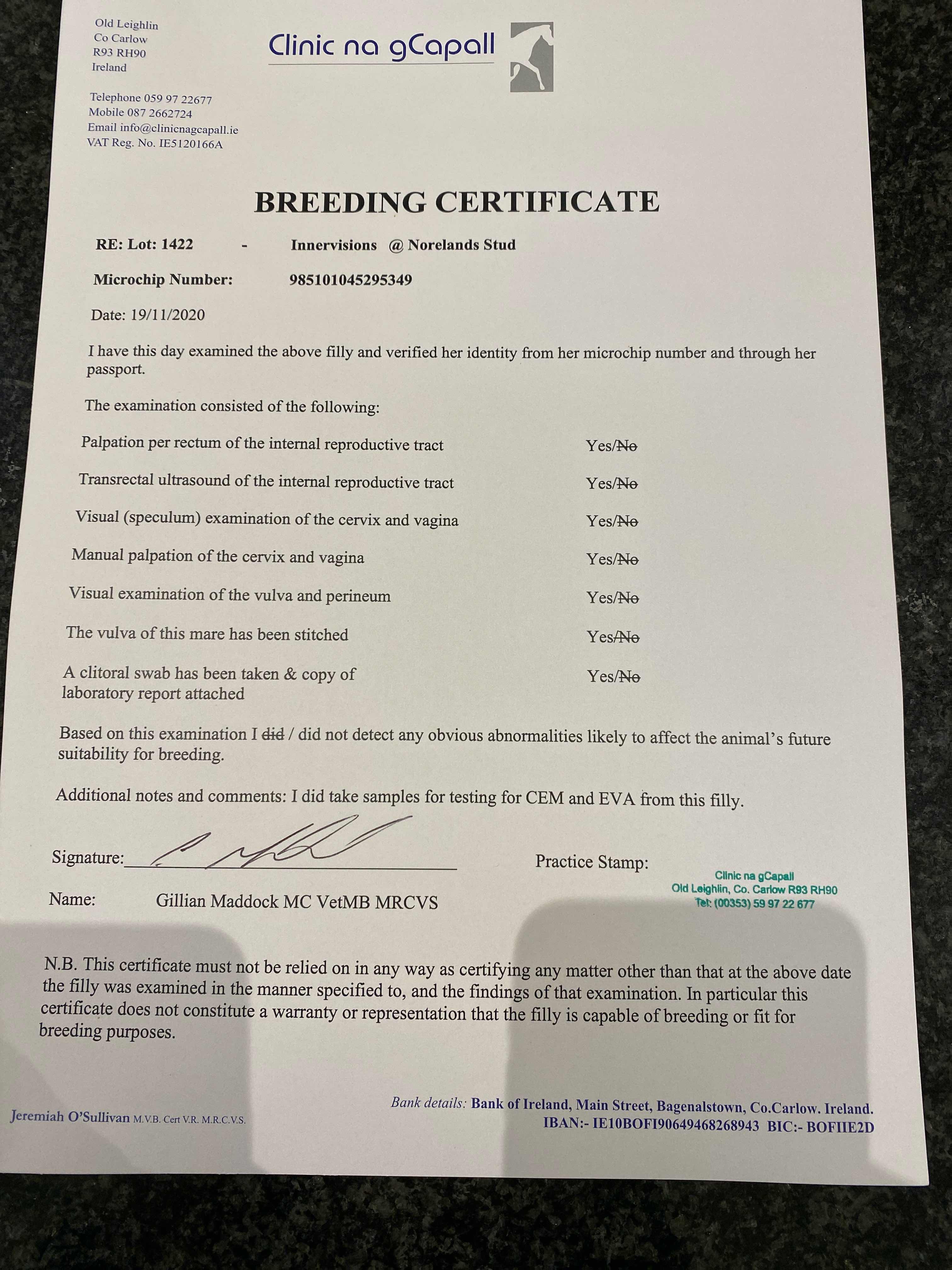 Fillies Examination Cert