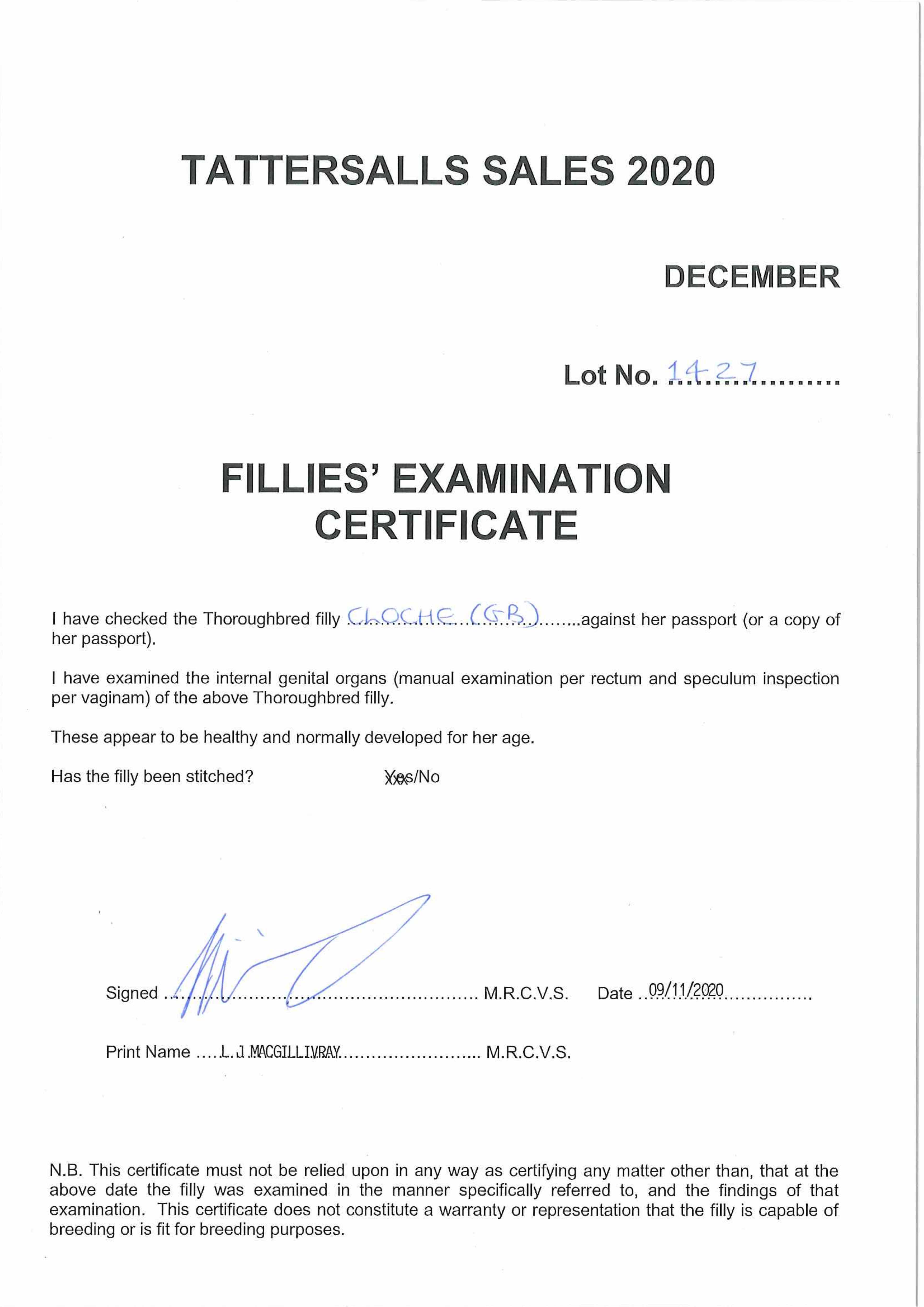 December Mare Sale 2020 lot 1307 Zendia (GB) (M. by New Approach (IRE)), Godolphin=>Fairway Partners 52,000 gns
