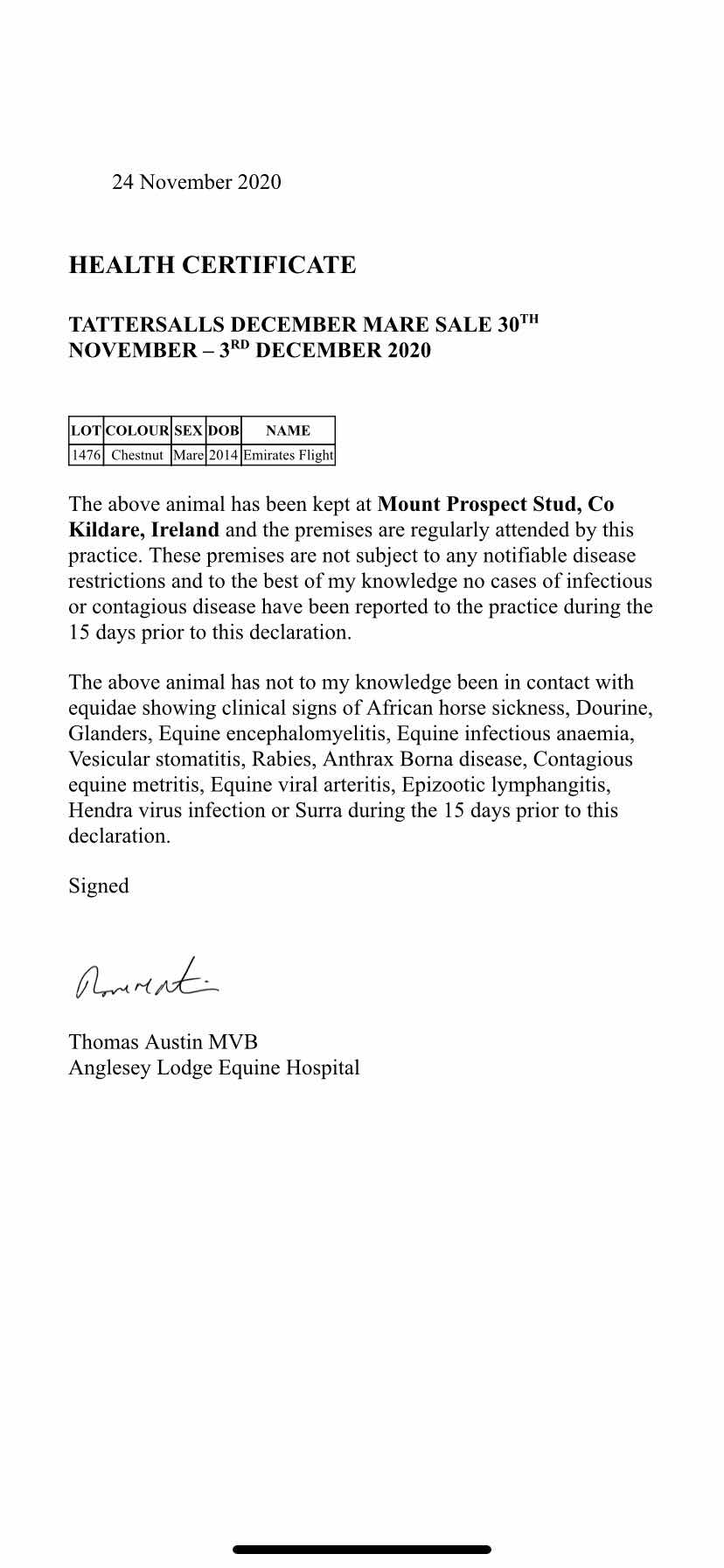 December Mare Sale 2020 lot 1728 Act Fast (GB) (M. by Shamardal (USA)), Highclere Stud=>Mickley Stud 45,000 gns