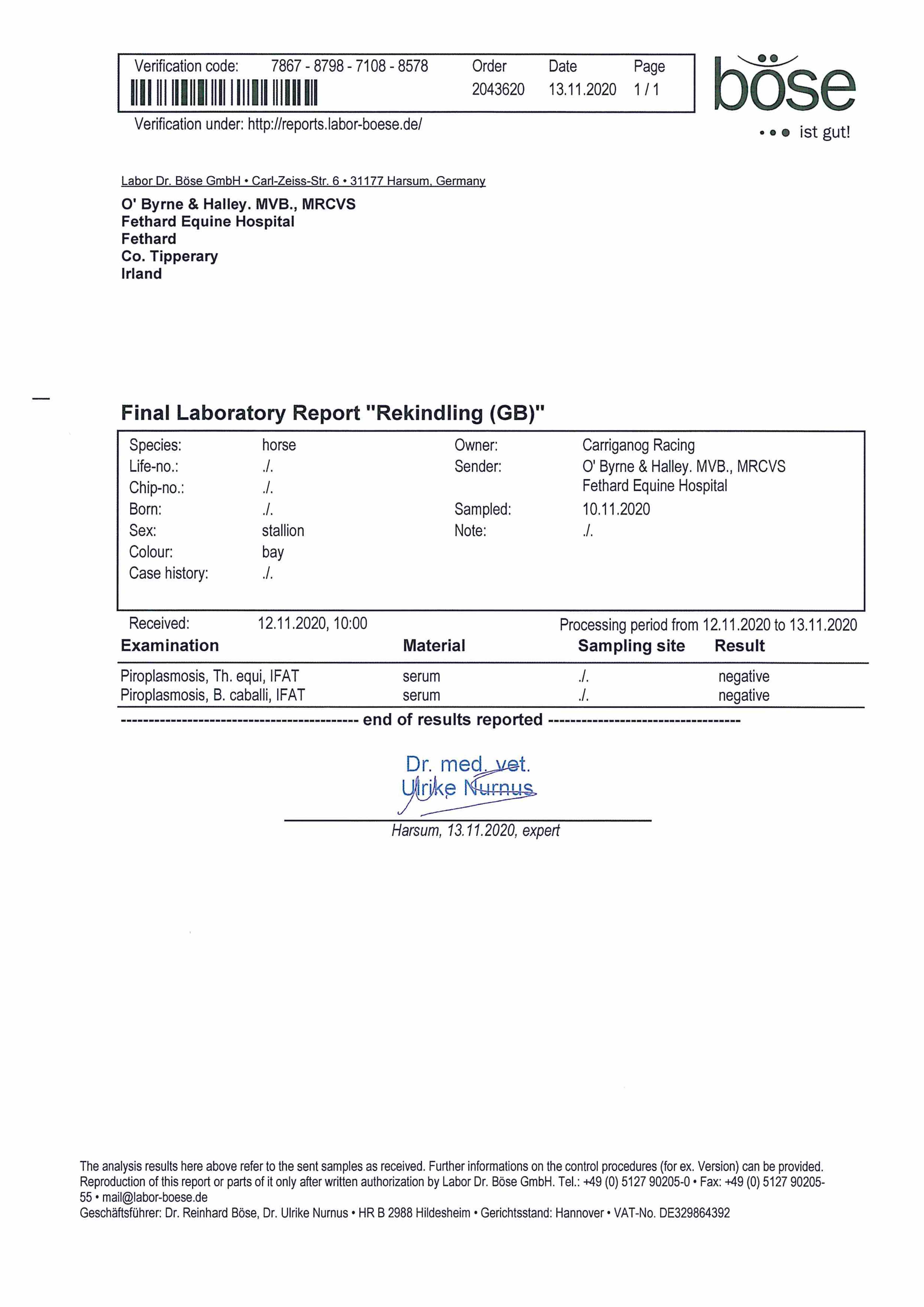 Consignor: Carriganog Racing, Ireland (J. P. O'Brien)