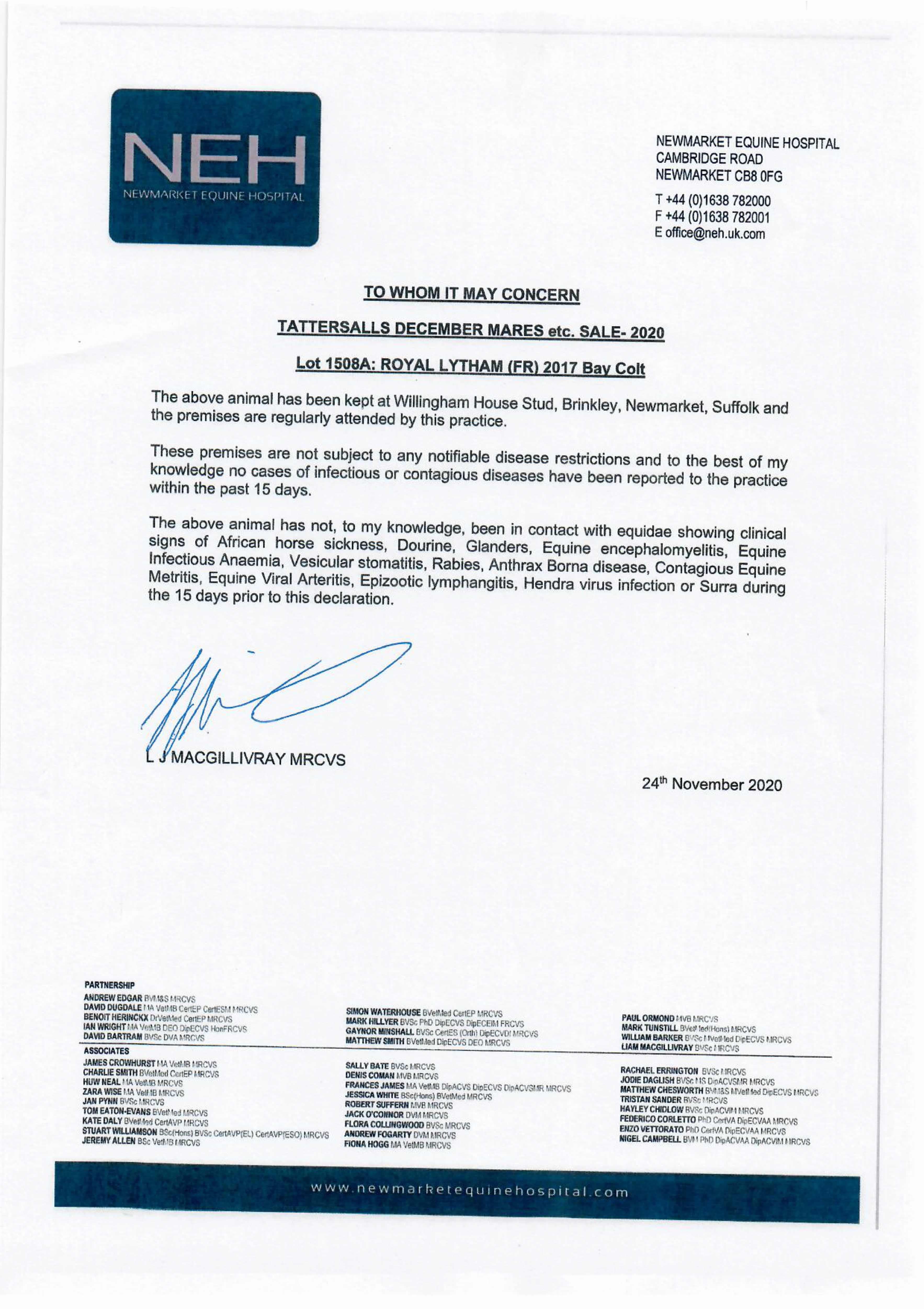 Online Charity Auction of Stallion Nominations lot 54 A Nomination to Royal Lytham (FR) (H.), =>Emmet McKenna £500