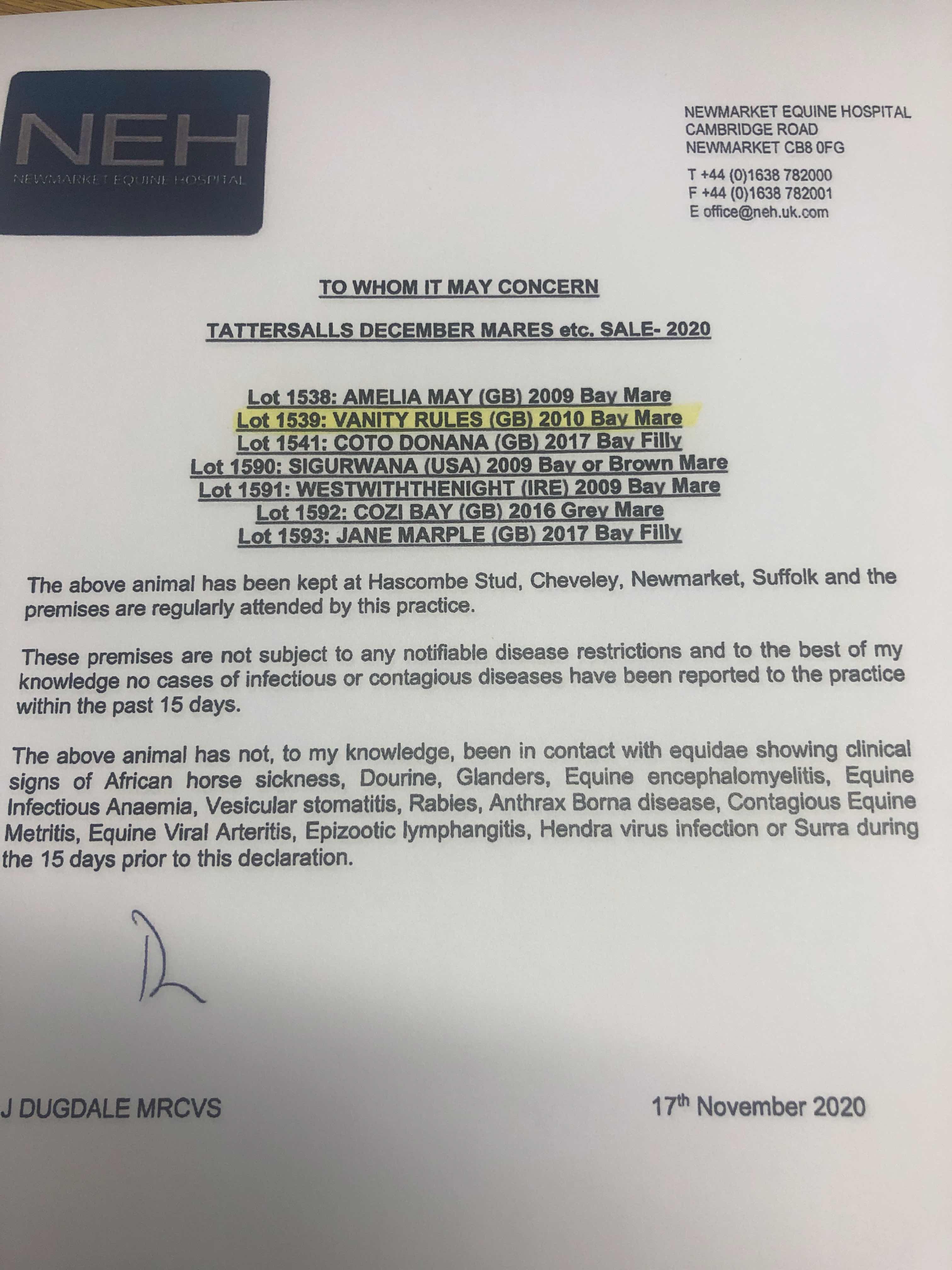December Mare Sale 2021 lot 1607 Voice of Glory (GB) (F. by Poet's Voice (GB)), Hascombe & Valiant Stud Ltd.=>Mostafa MA El-Bakkoush 1,000 gns