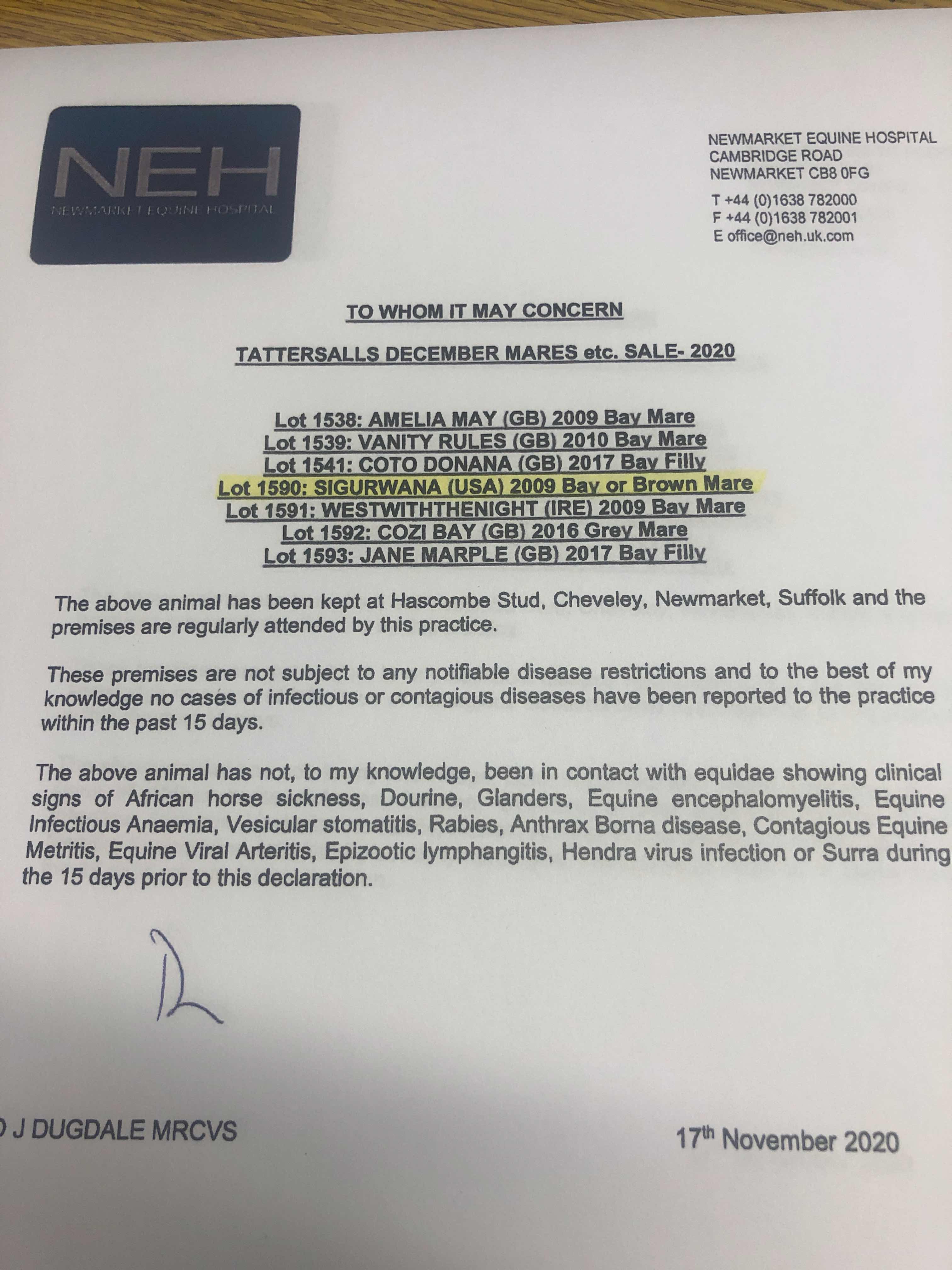 December Mare Sale 2020 lot 1541 Coto Donana (GB) (F. by Kingman (GB)), Hascombe & Valiant Stud Ltd.=>De Burgh Equine 25,000 gns