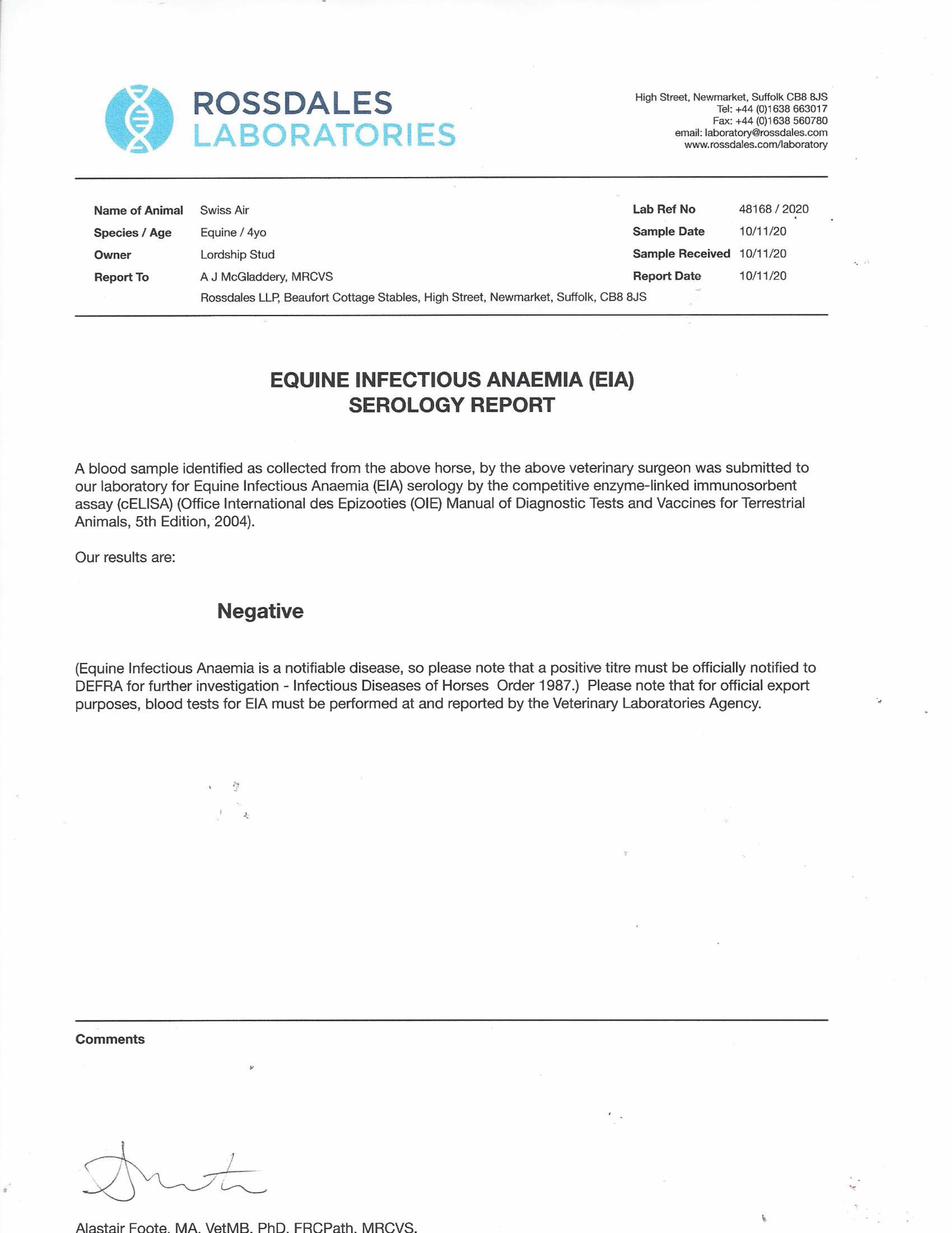 Online Charity Auction of Stallion Nominations lot 66 A Nomination to Swiss Spirit (GB) (H. by Invincible Spirit (IRE)), =>Bidding Closed £1,000