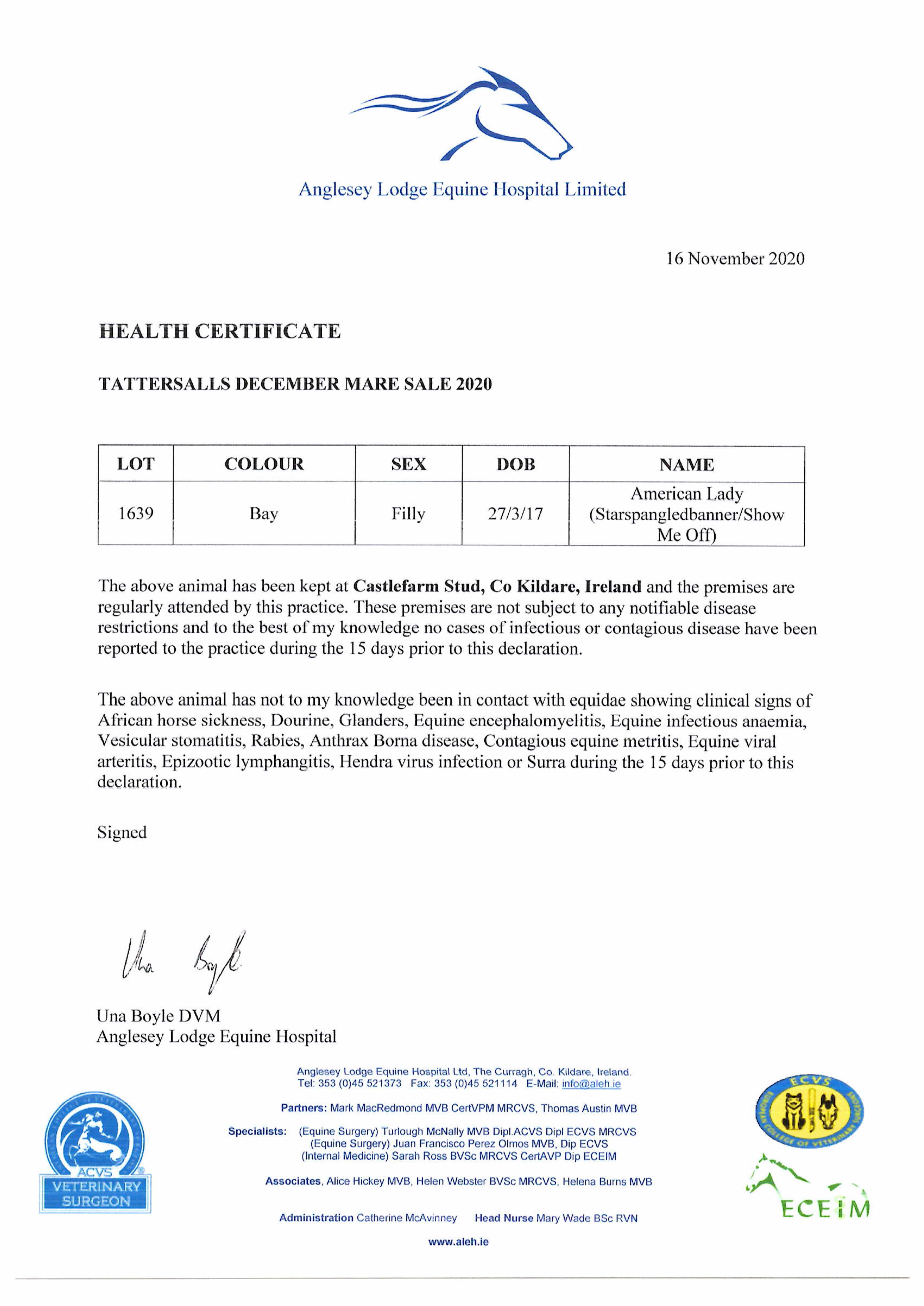 Consignor: Castlefarm Stud, Ireland (Agent)