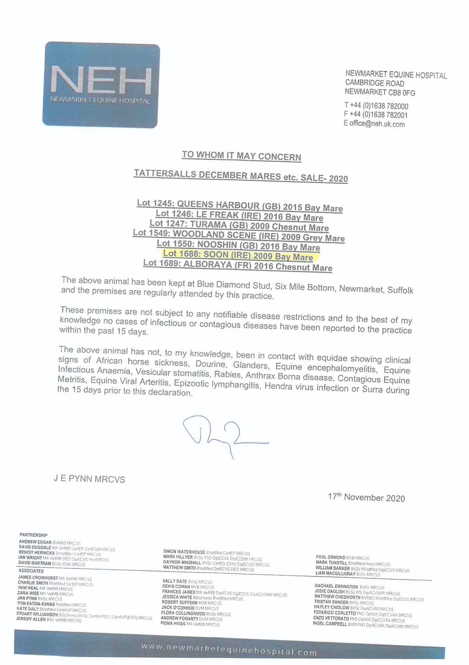 December Mare Sale 2018 lot 1917, New England Stud=>Blue Diamond Stud Farm UK 300,000 gns
