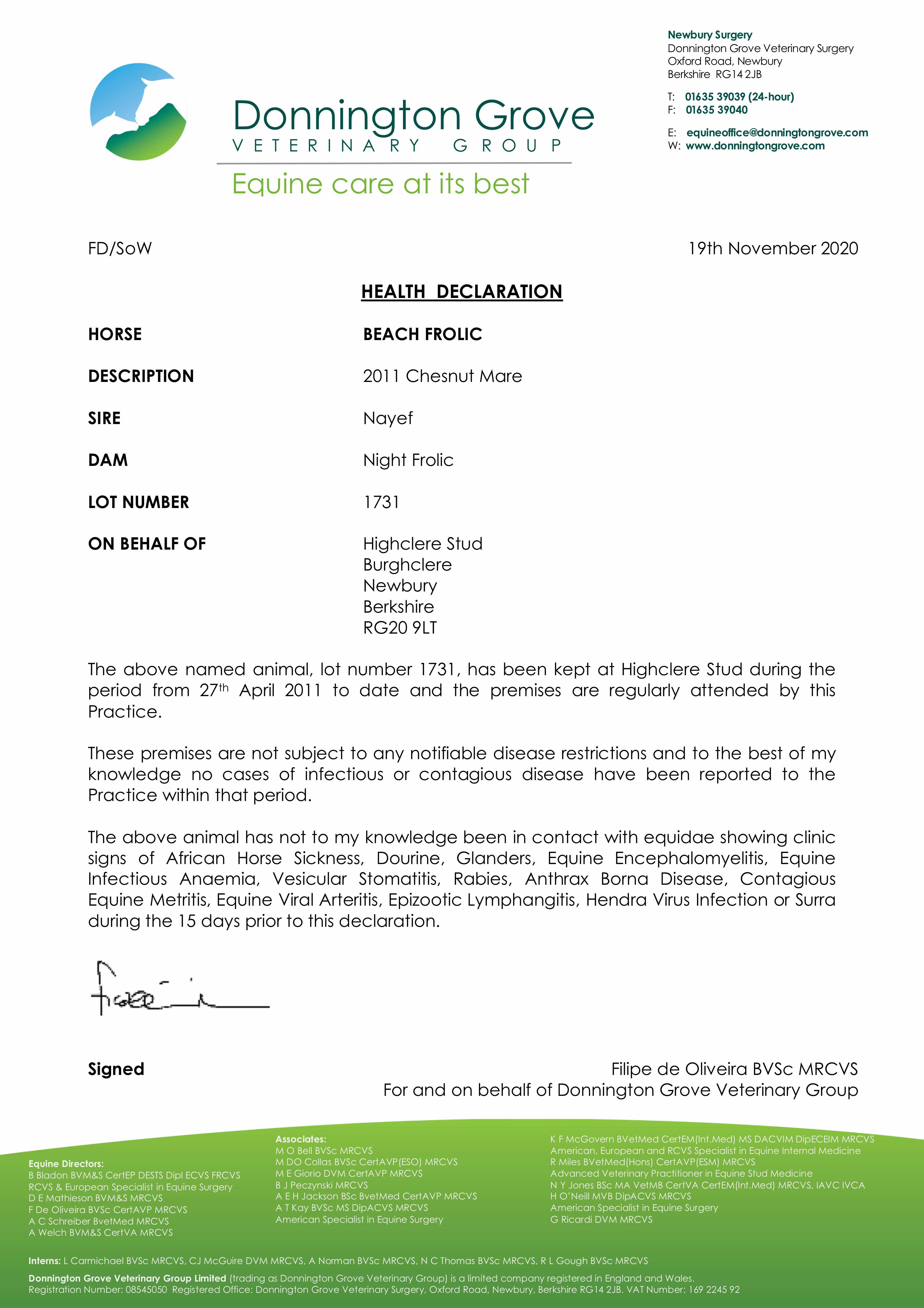 Consignor: Highclere Stud