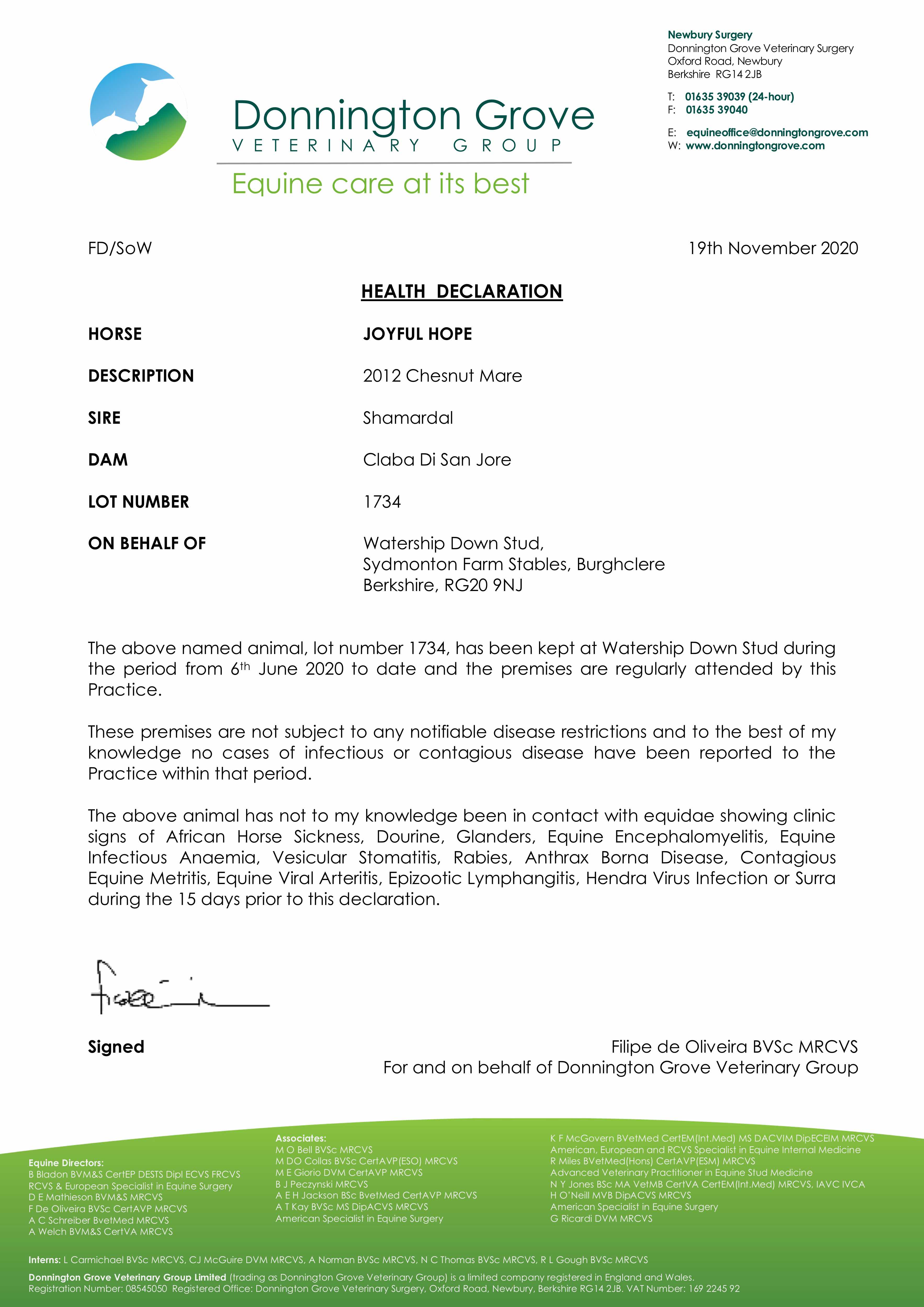 December Foal Sale 2020 lot 954 F. by Dubawi (IRE) 2020, New England Stud=>Haras De Saint Pair 310,000 gns