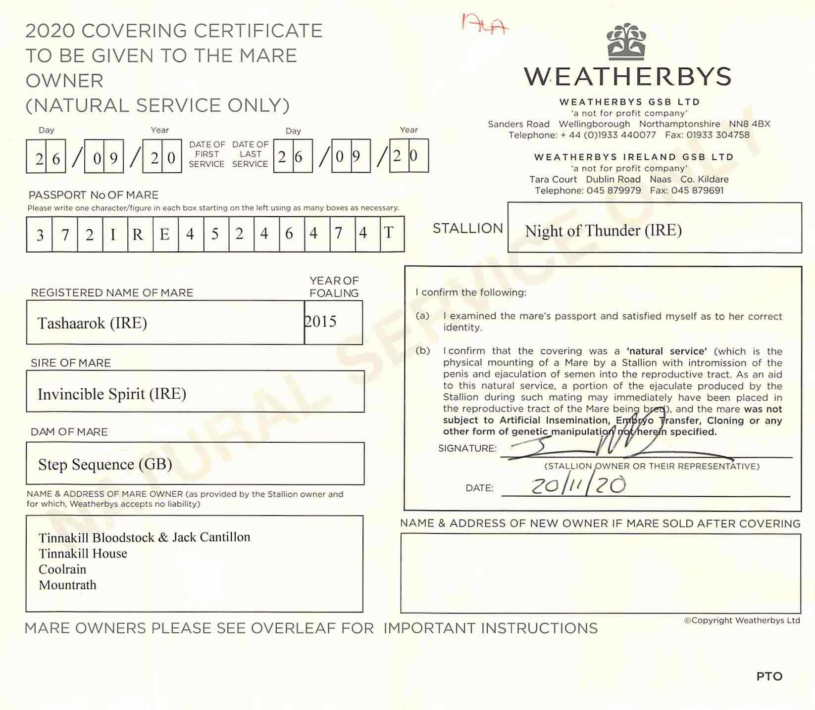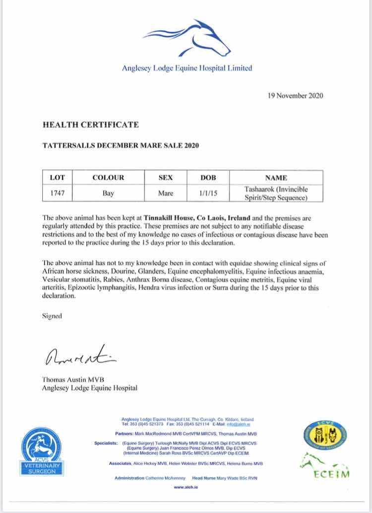 Consignor: Tinnakill House, Ireland