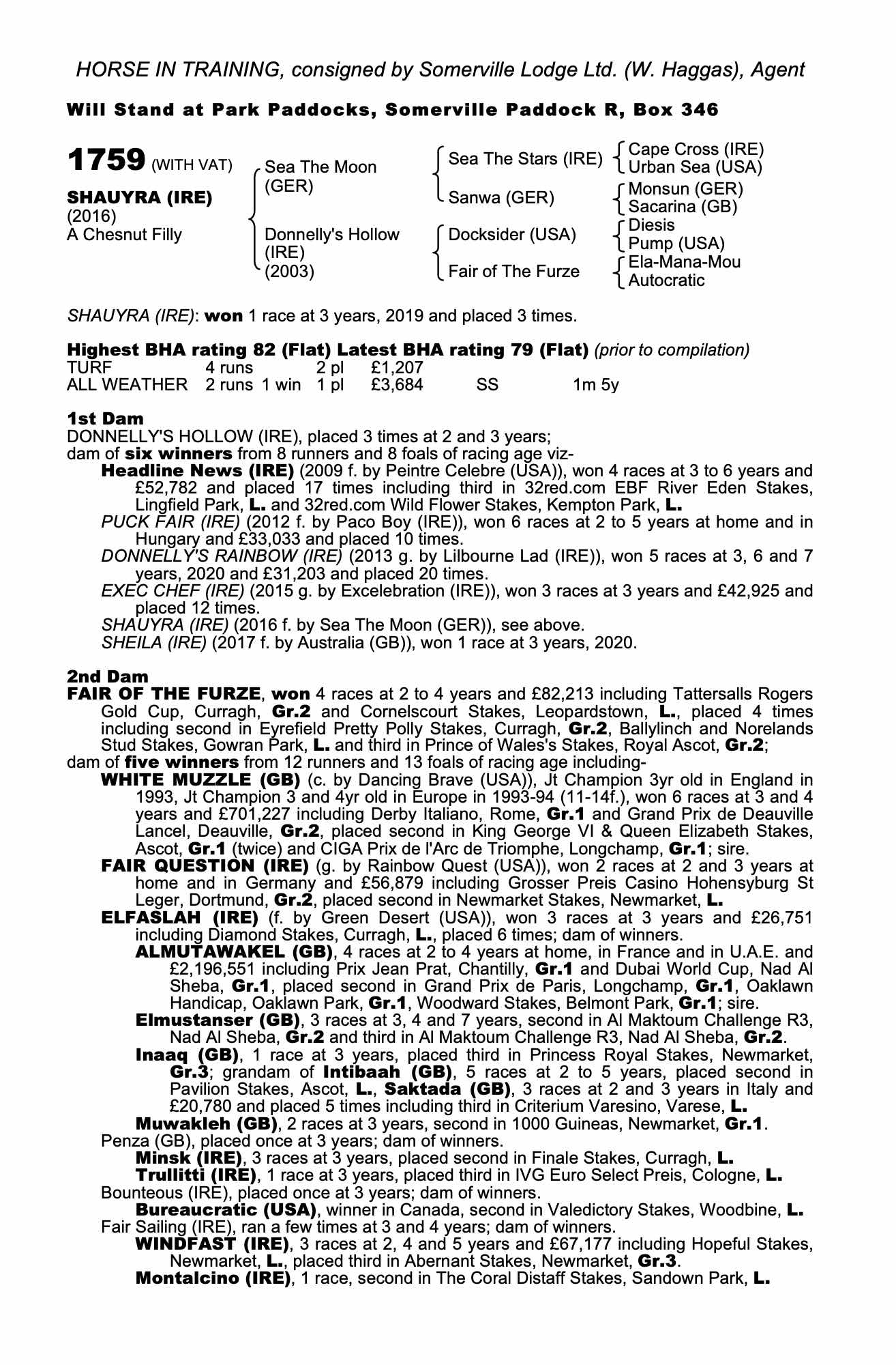 Consignor: Somerville Lodge Ltd. (W. Haggas), Agent