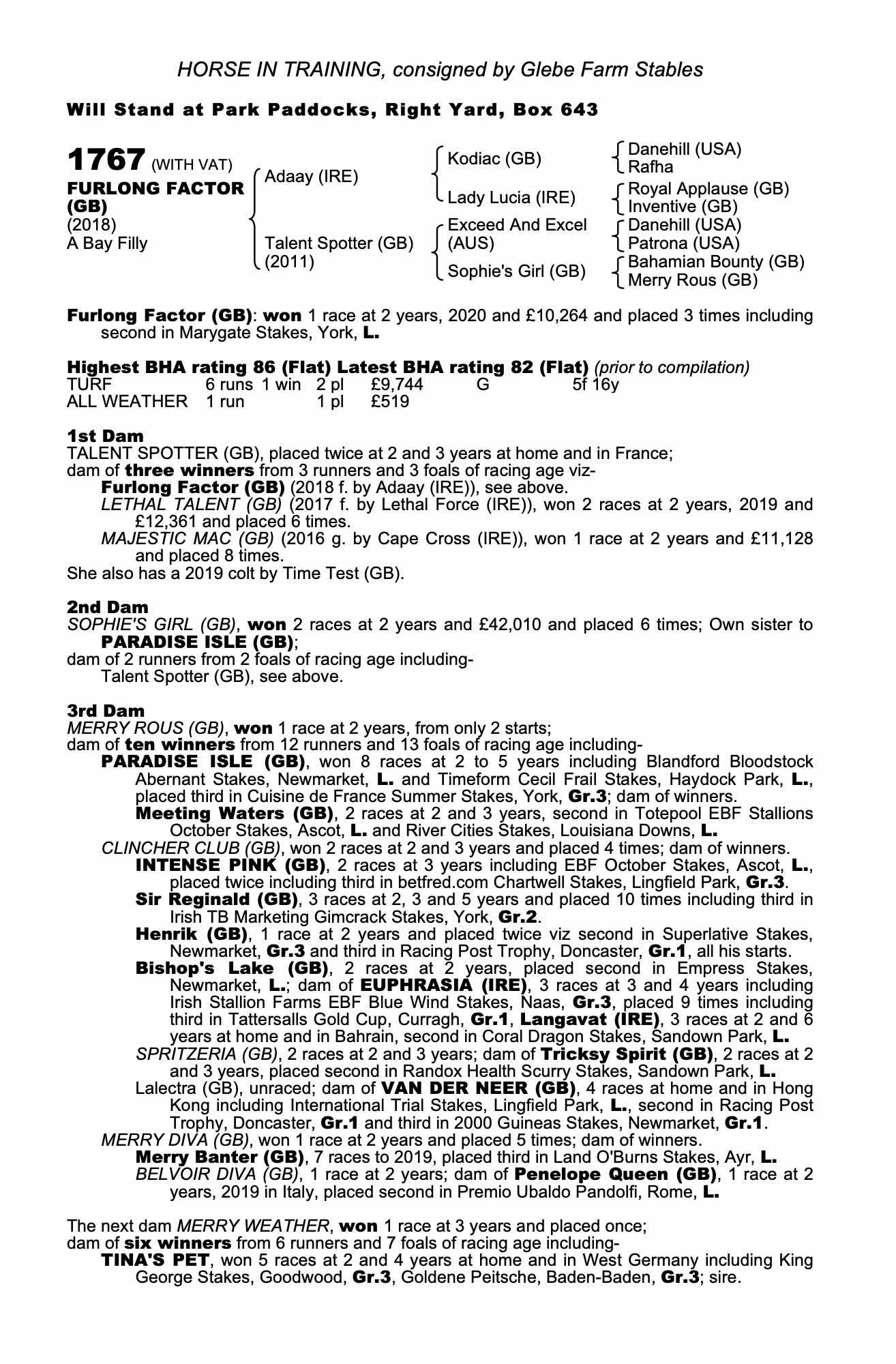 Autumn Horses In Training Sale 2020 lot 805 Lethal Talent (GB) (F. by Lethal Force (IRE)), Whitcoombe House Stables (J. Portman)=>Al Sharq Racing 7,500 gns