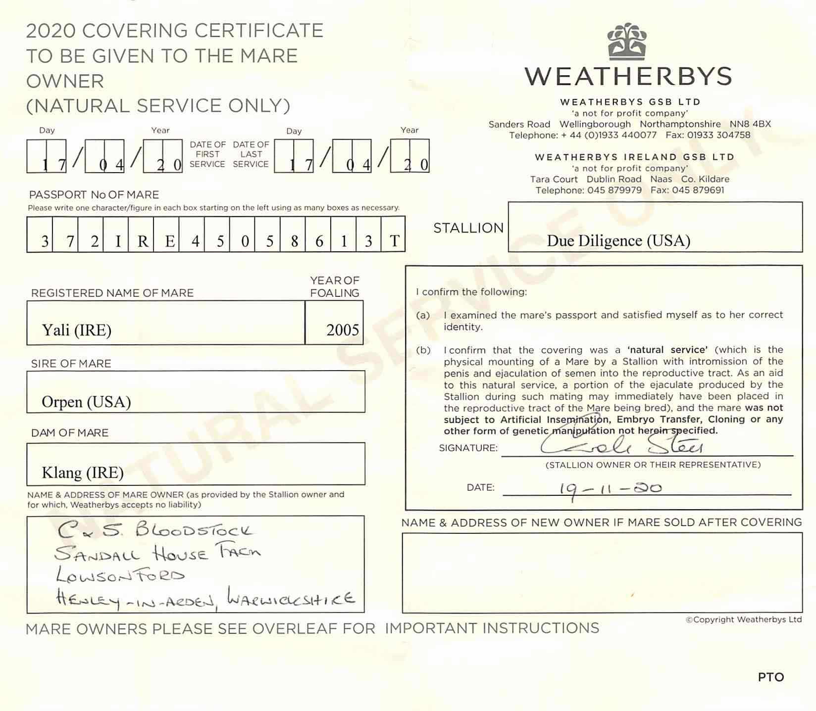 Consignor: Salcey Forest Stud