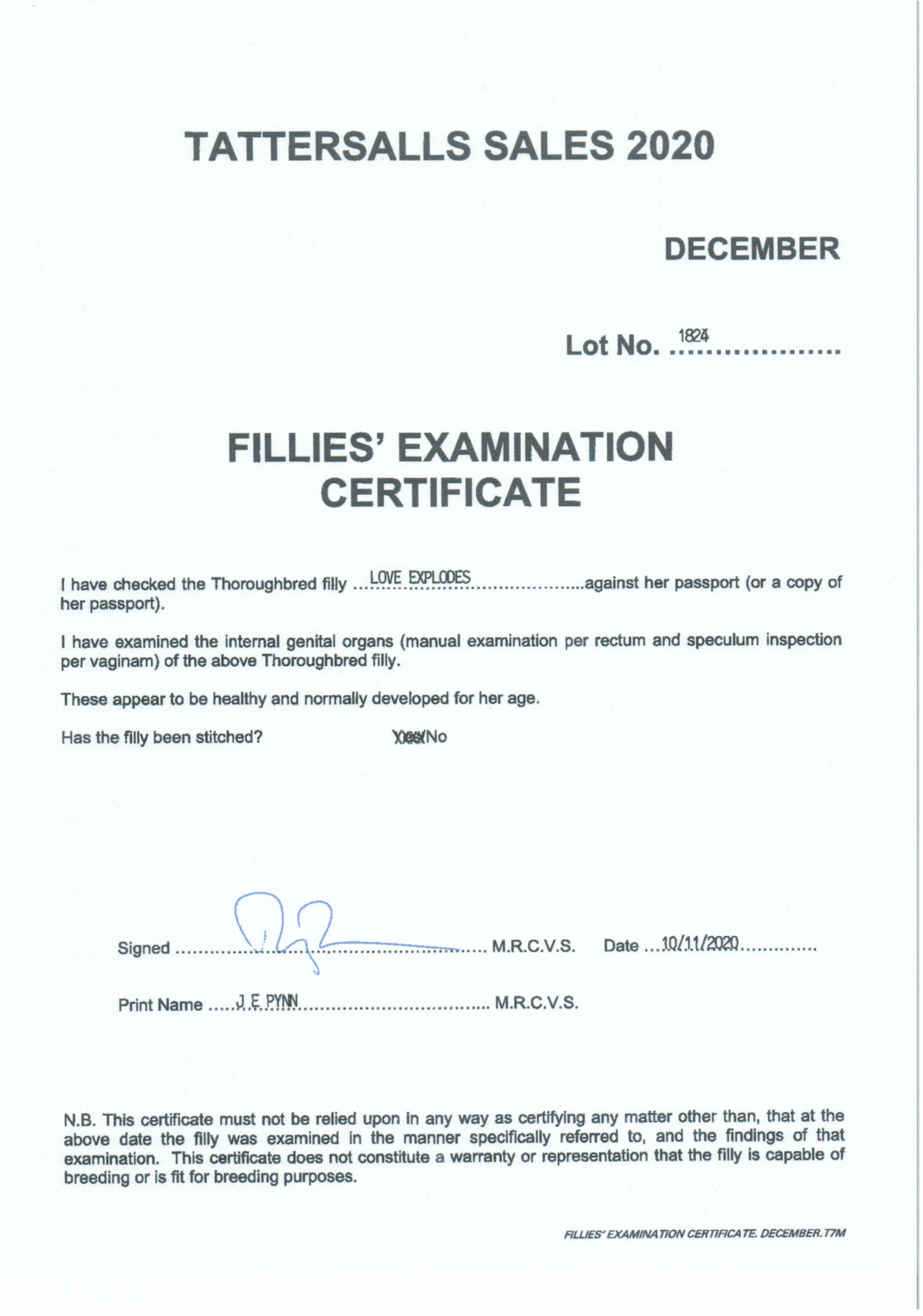 February Sale 2025 lot 204 Dr T H G (GB) (G. by Sottsass (FR)), Jamie Railton (Agent)=>Walter Buick 14,000 gns