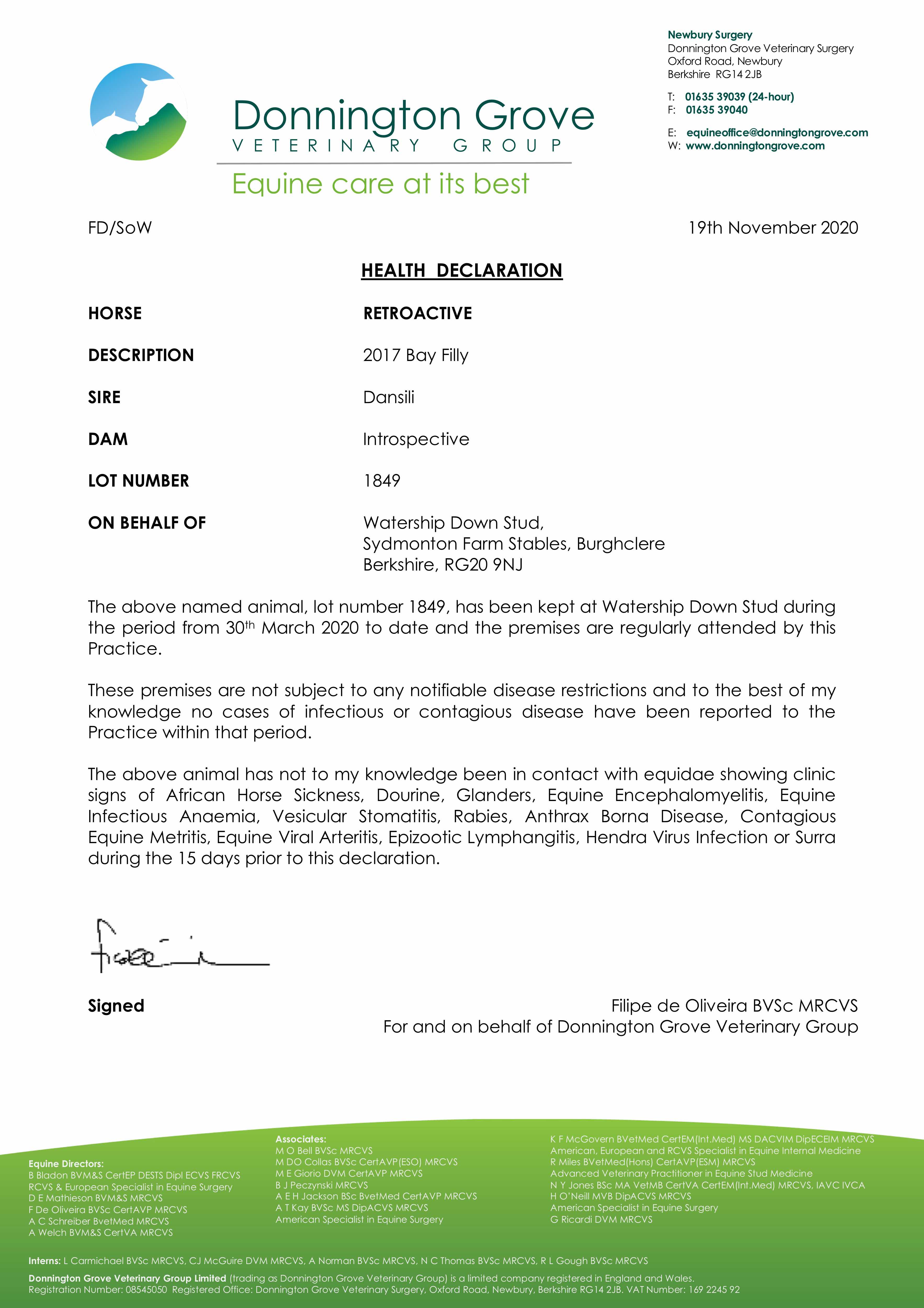 October Yearling Sale, Book 2 2018 lot 1155, Watership Down Stud=>Vendor 30,000 gns