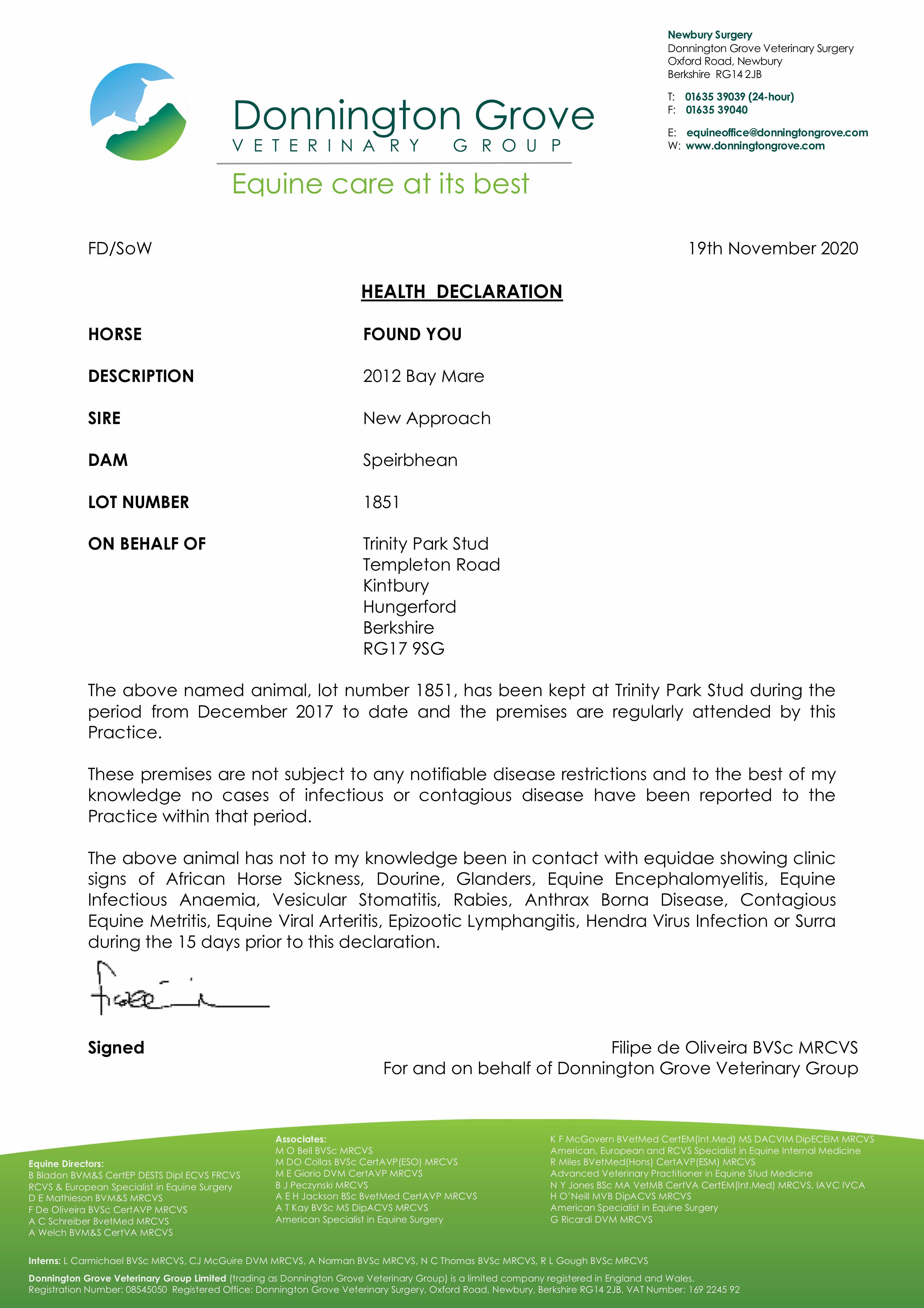 Consignor: Trinity Park Stud