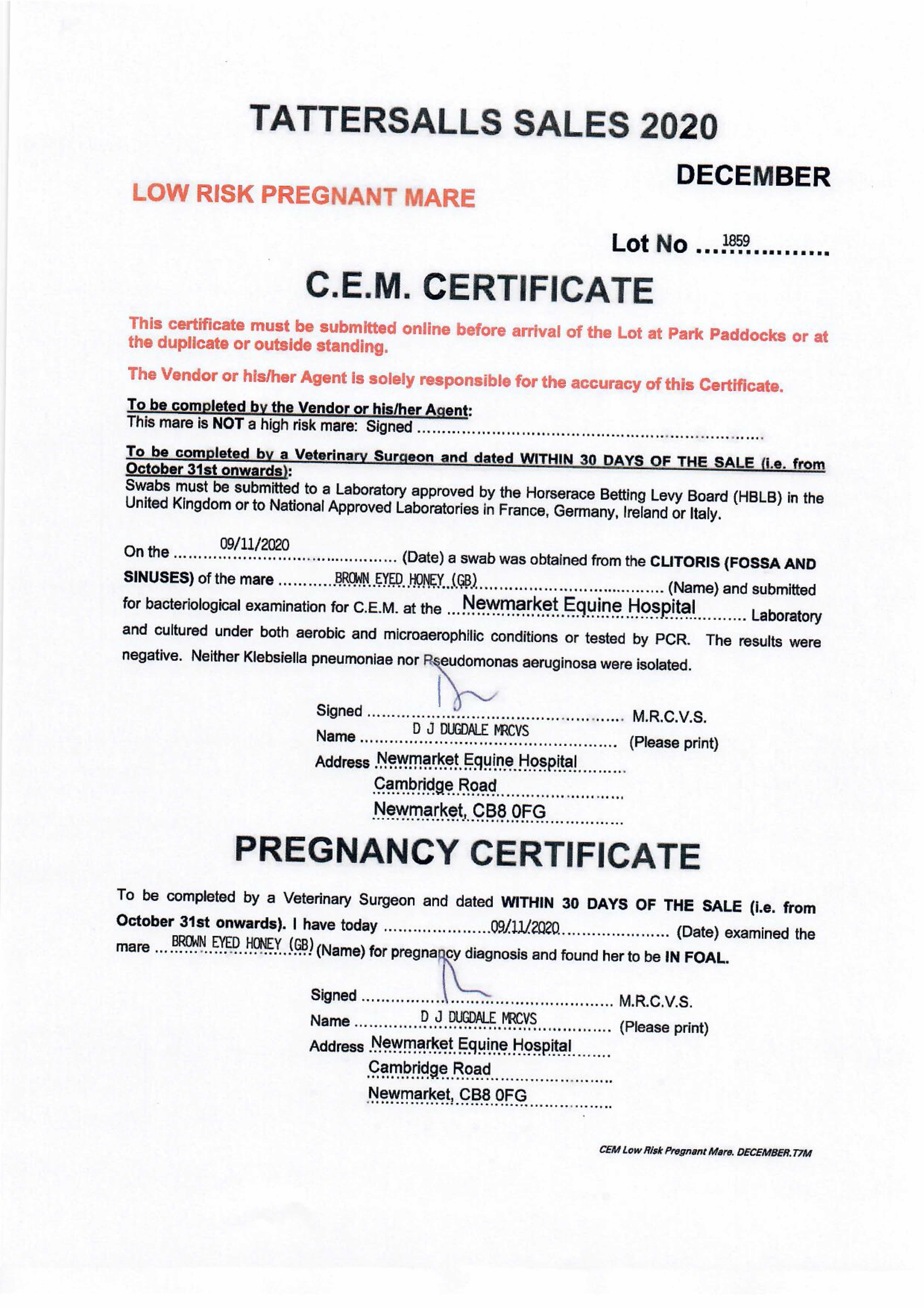 December Foal Sale 2019 lot 1100 F. by Ardad (IRE) 2019, Dukes Stud=>BBA Ireland 1,000 gns