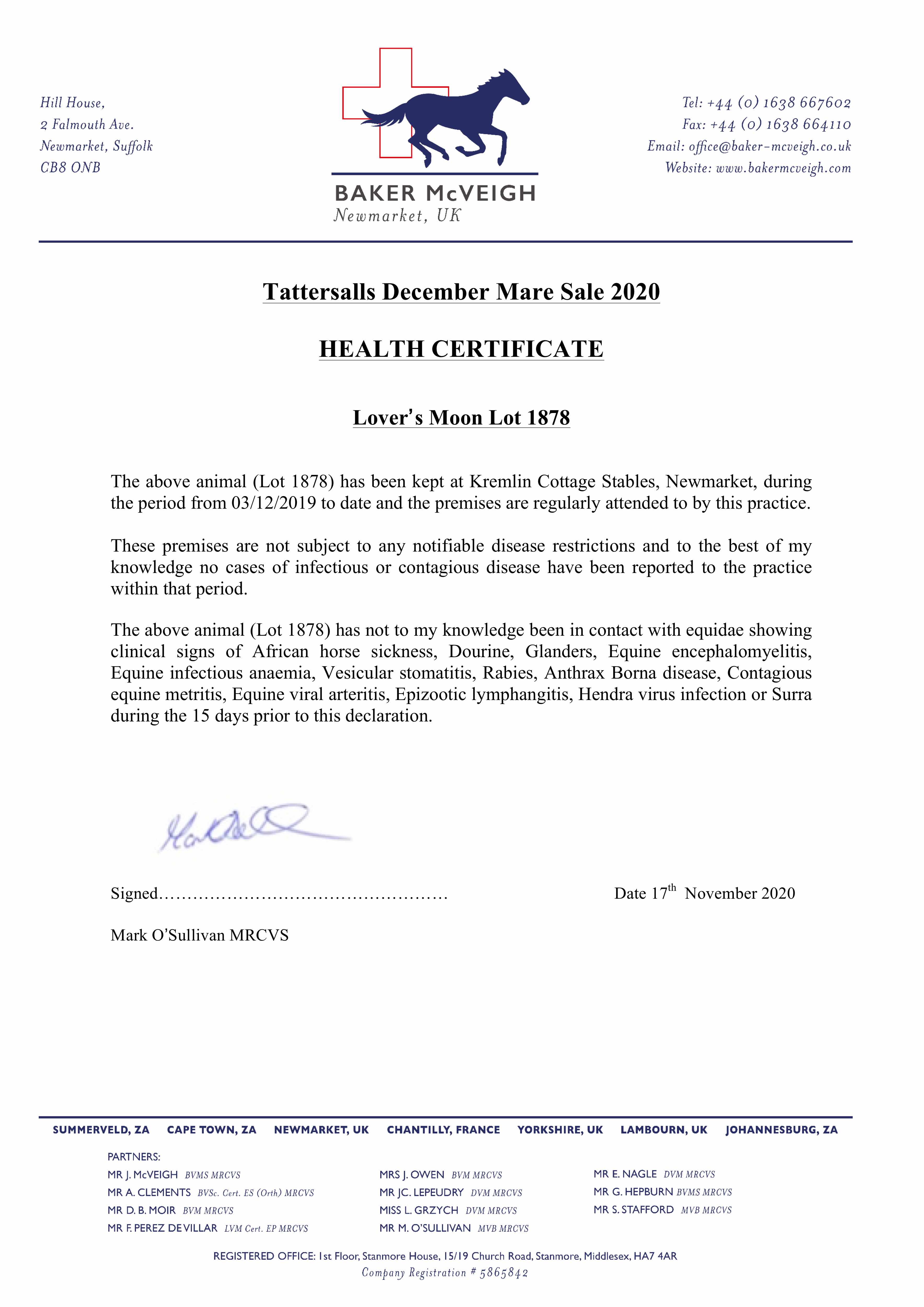 December Foal Sale 2019 lot 854 F. by Dark Angel (IRE) 2019, Mattock Equine=>Vendor 160,000 gns