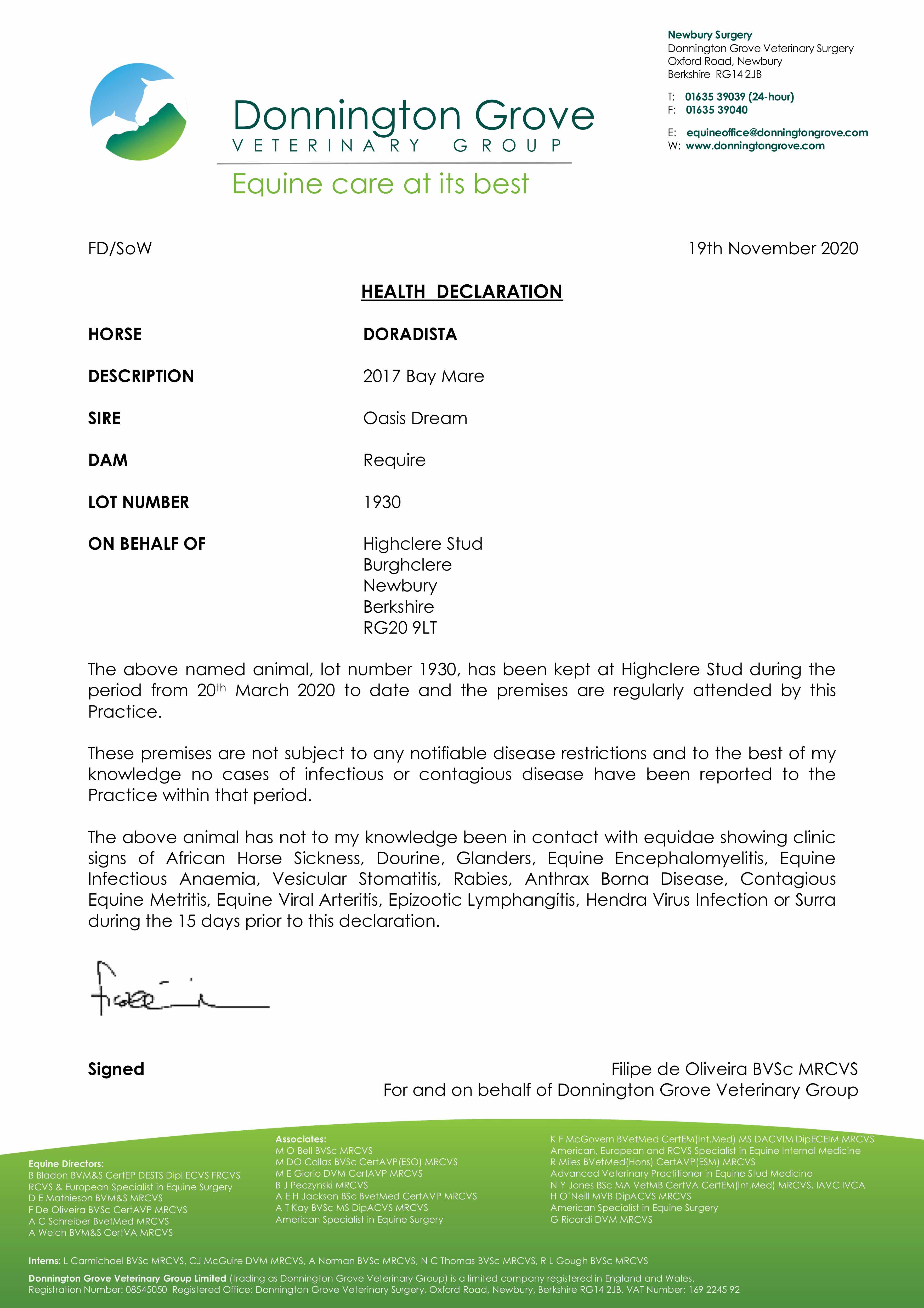 Consignor: Highclere Stud