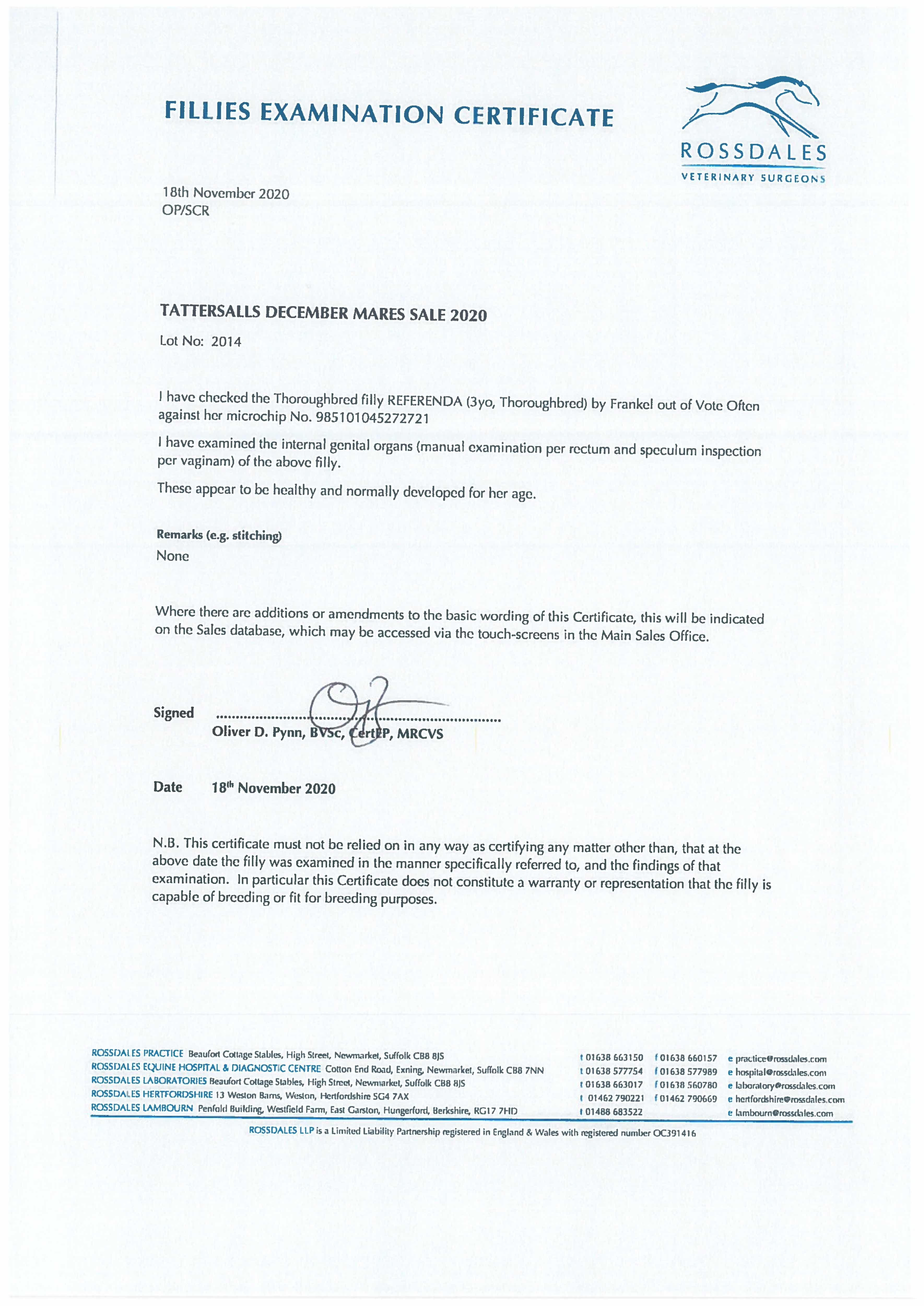 December Foal Sale 2025 lot 277 F. by Ardad (IRE) 2025, Whatton Manor Stud=>Private Bloodstock 8,500 gns