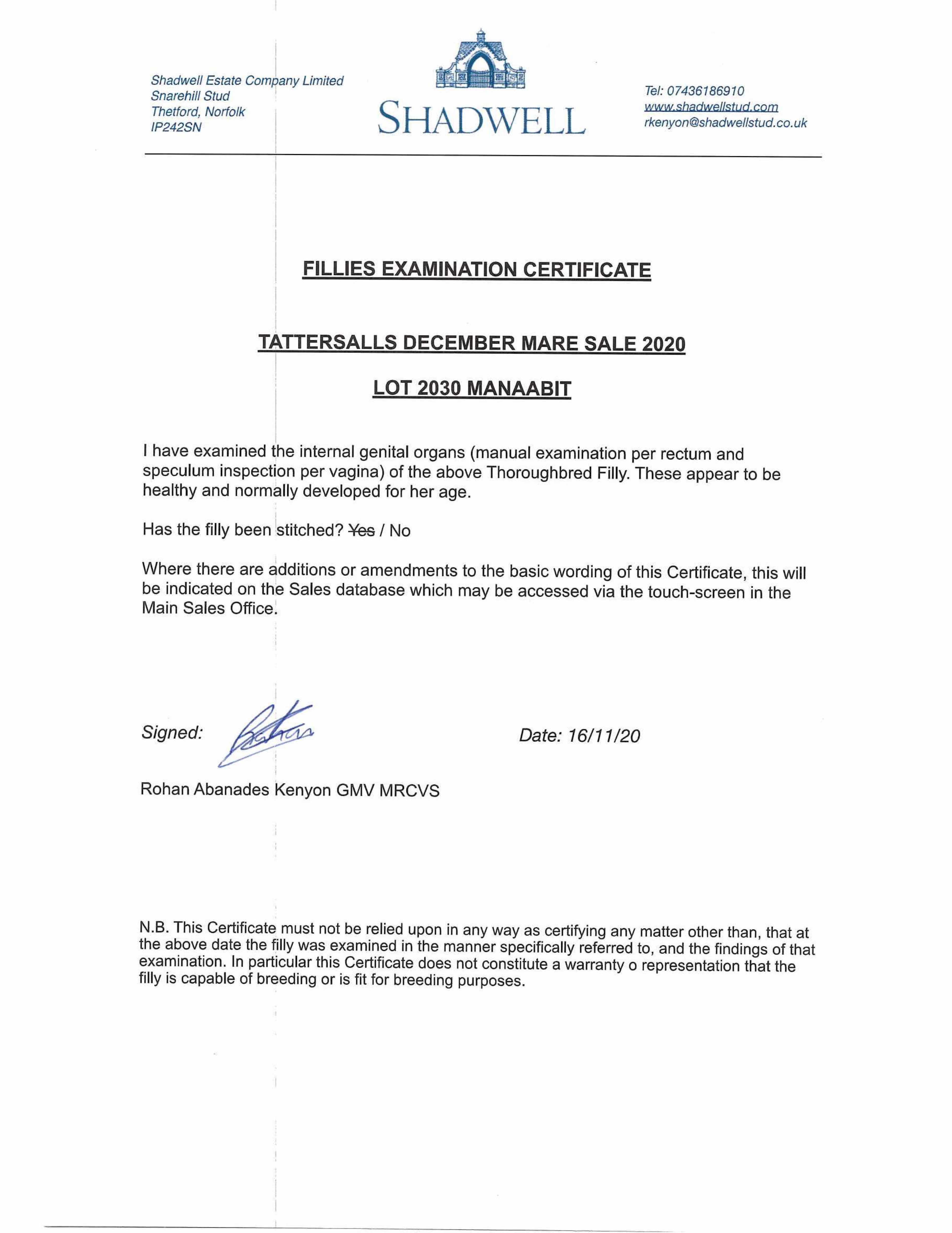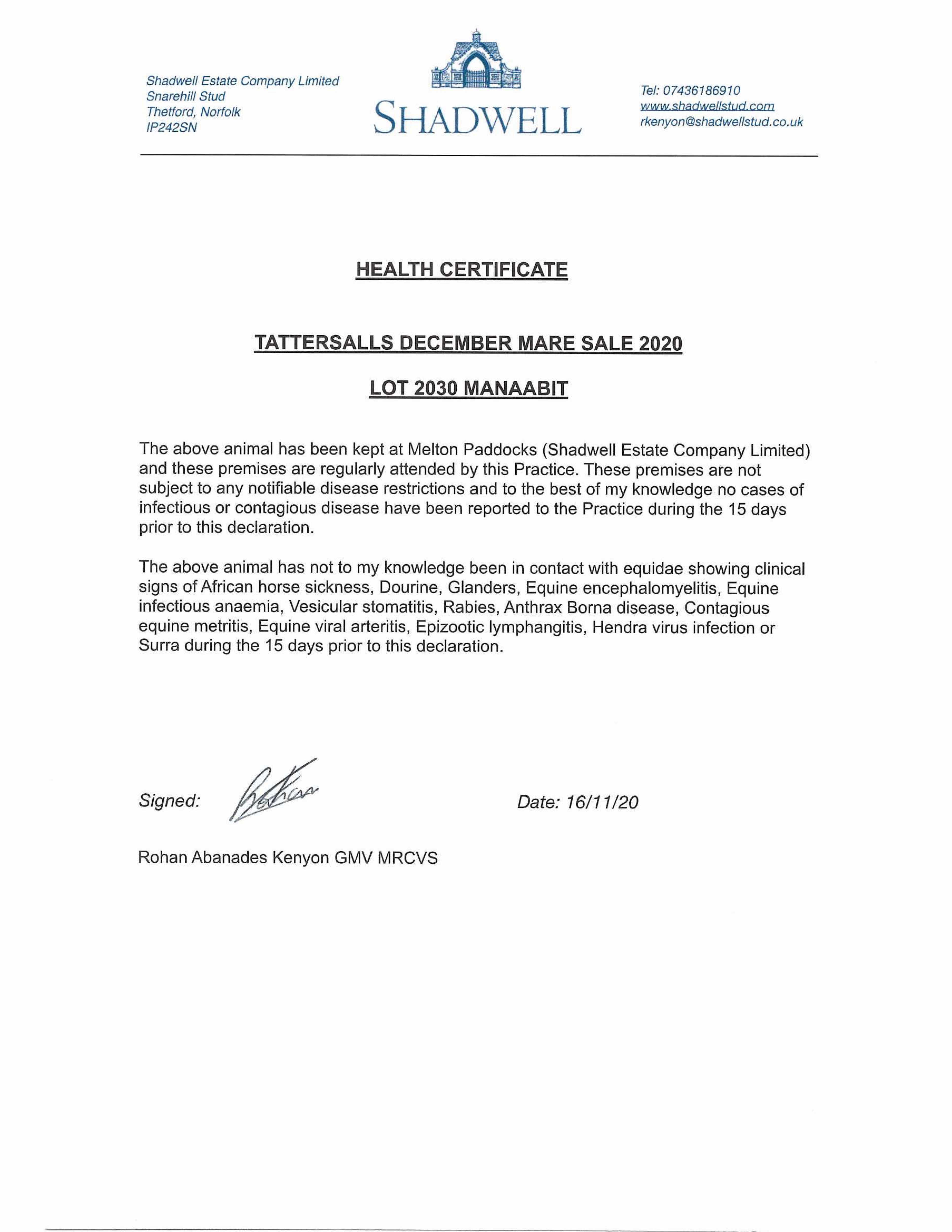 Consignor: Shadwell Estate Company Ltd.