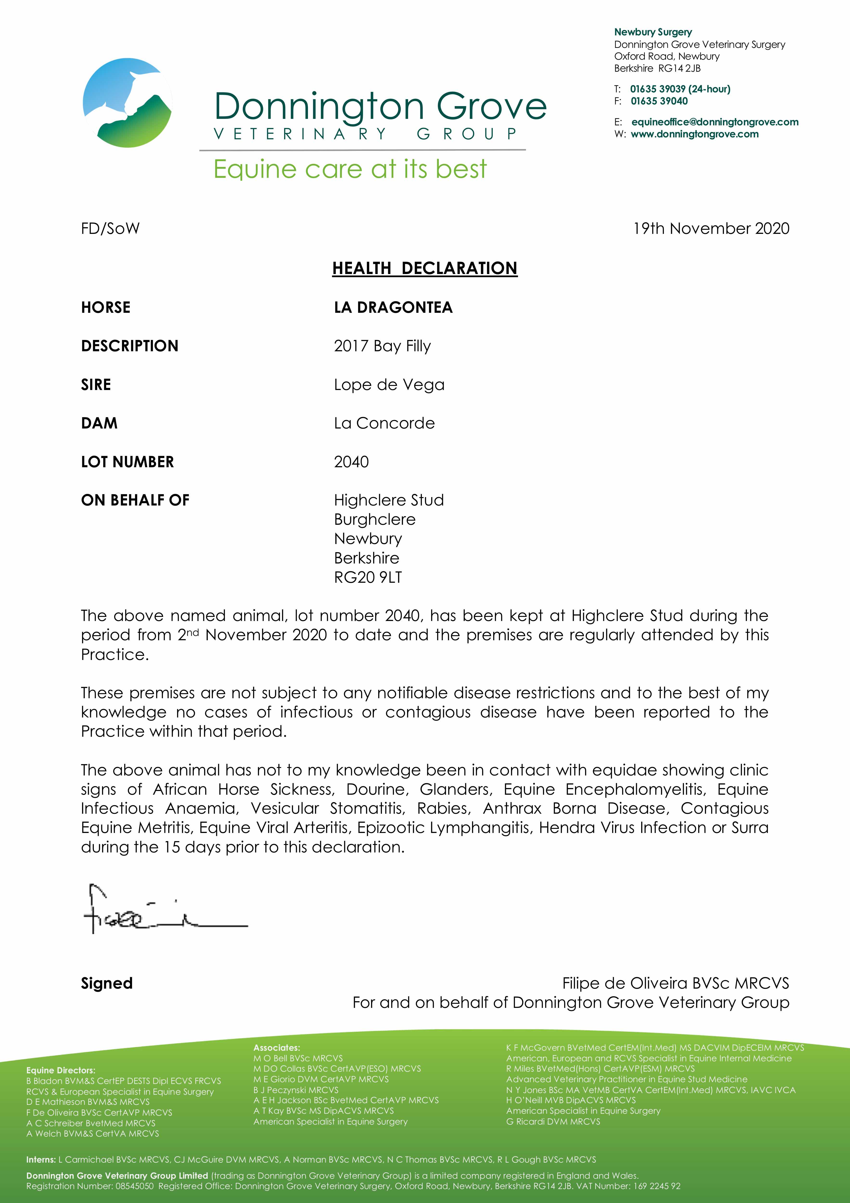 December Yearling Sale 2019 lot 143 F. by Cable Bay (IRE) 2018, Highclere Stud=>Denis Coakley 6,000 gns