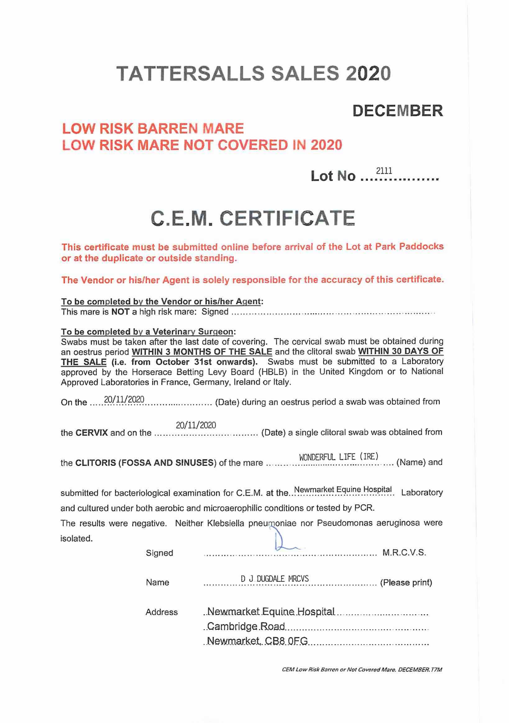 December Mare Sale 2023 lot 2164, The National Stud Ltd.=>Vendor 1,000 gns