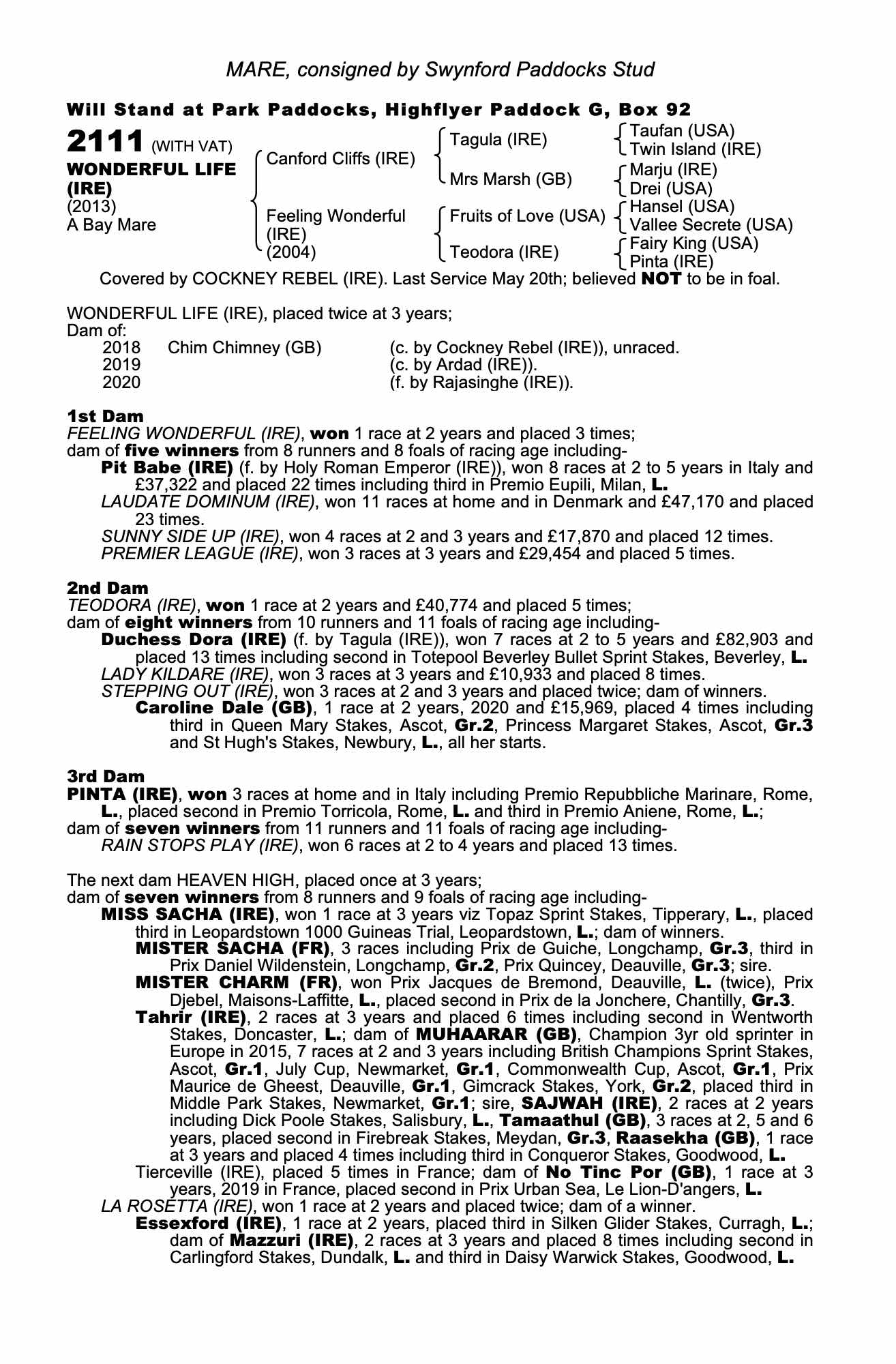 Online Sale - 18th January 2024 lot 72, The National Stud Ltd.=>Lot Not Sold 900 gns