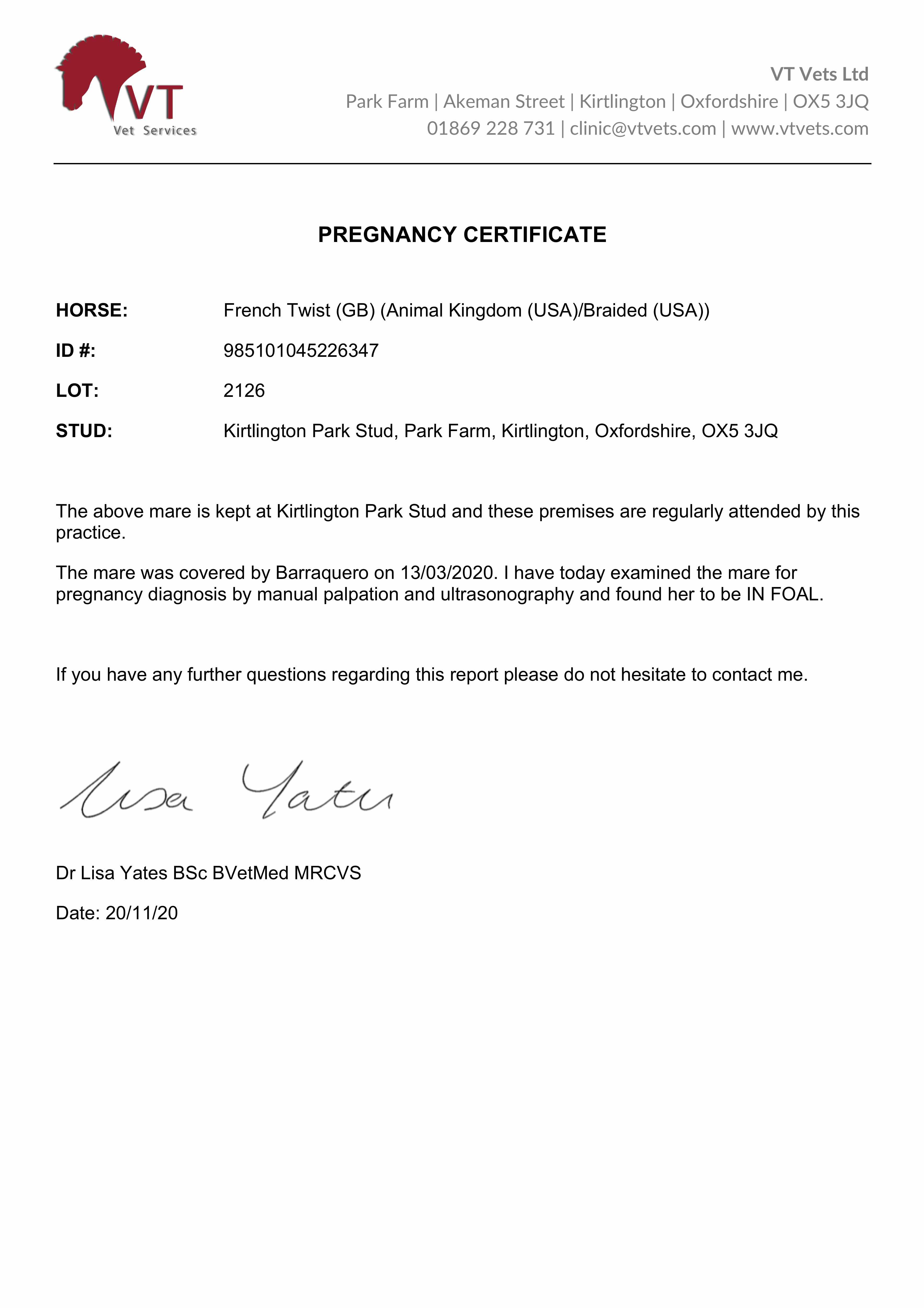 Consignor: Kirtlington Park Stud