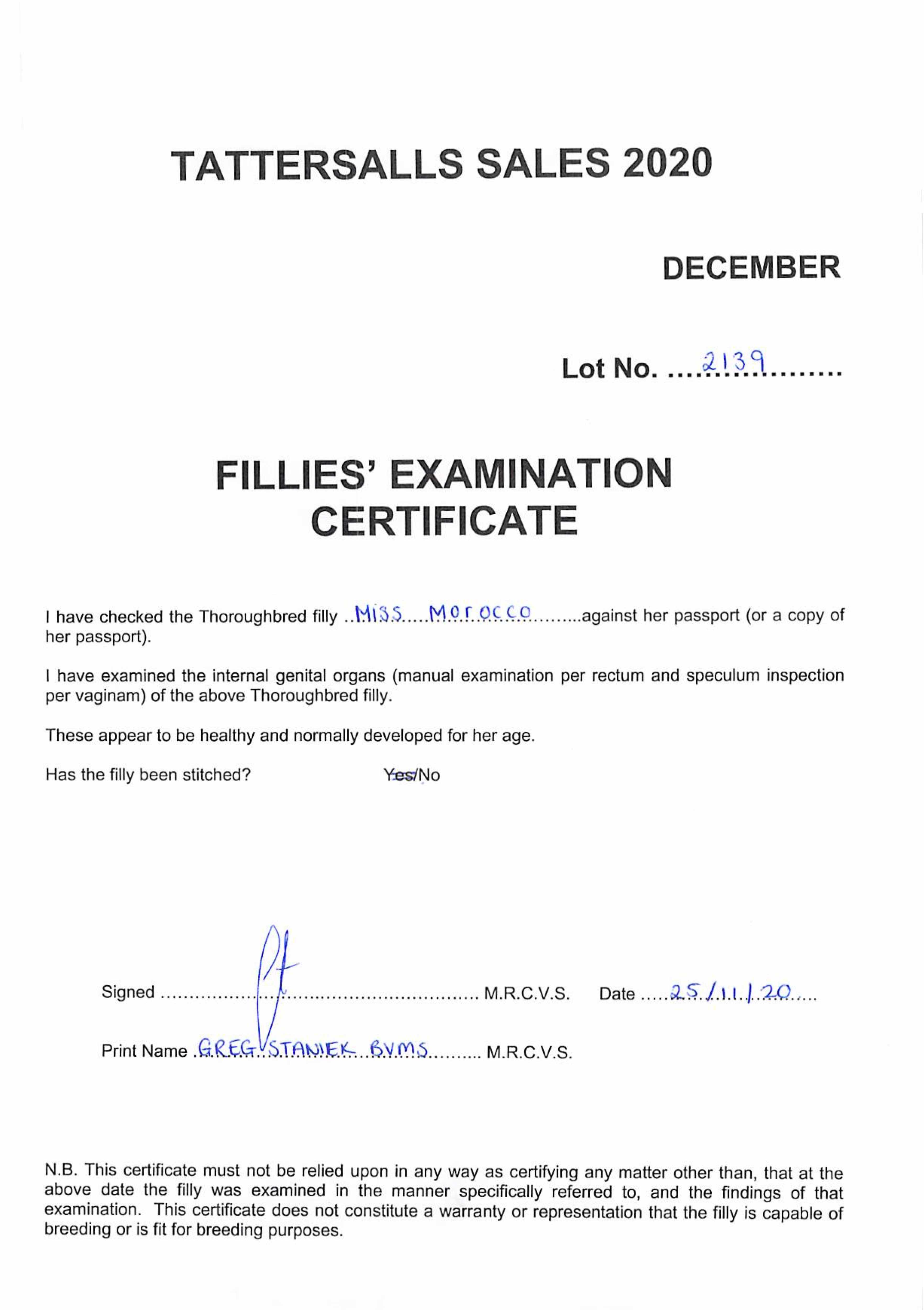 December Mare Sale 2019 lot 2055, Voute Sales Ltd. (Agent)=>Vendor 1,500 gns